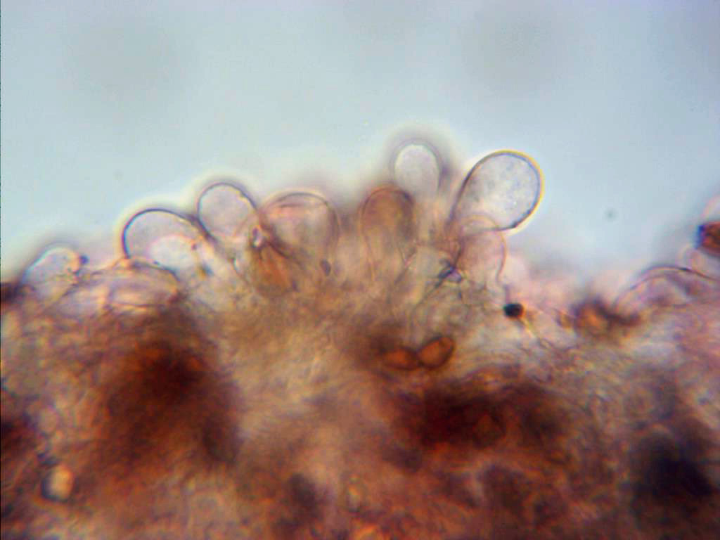 Basándome en la ausencia de pleurocistidios y en la reacción dextrinoide de las esporas, es por lo que he considerado a Galerina como género. De Galerinas ya he pasado algunas por el micro y lo que no me cuadra en este caso es la morfología de los queilocistidios. No conozco ninguna que presente algo parecido, aunque no digo que no la haya.