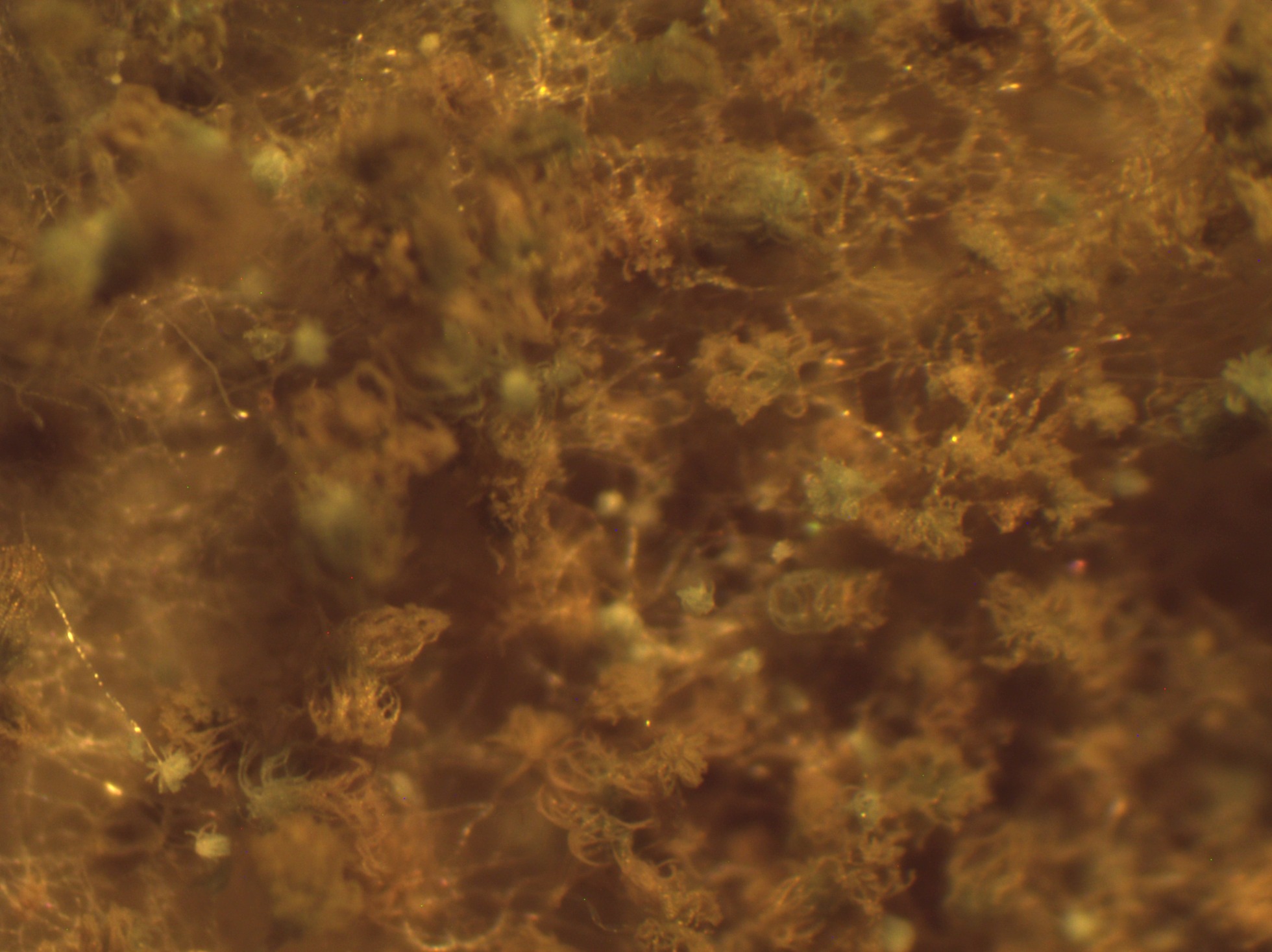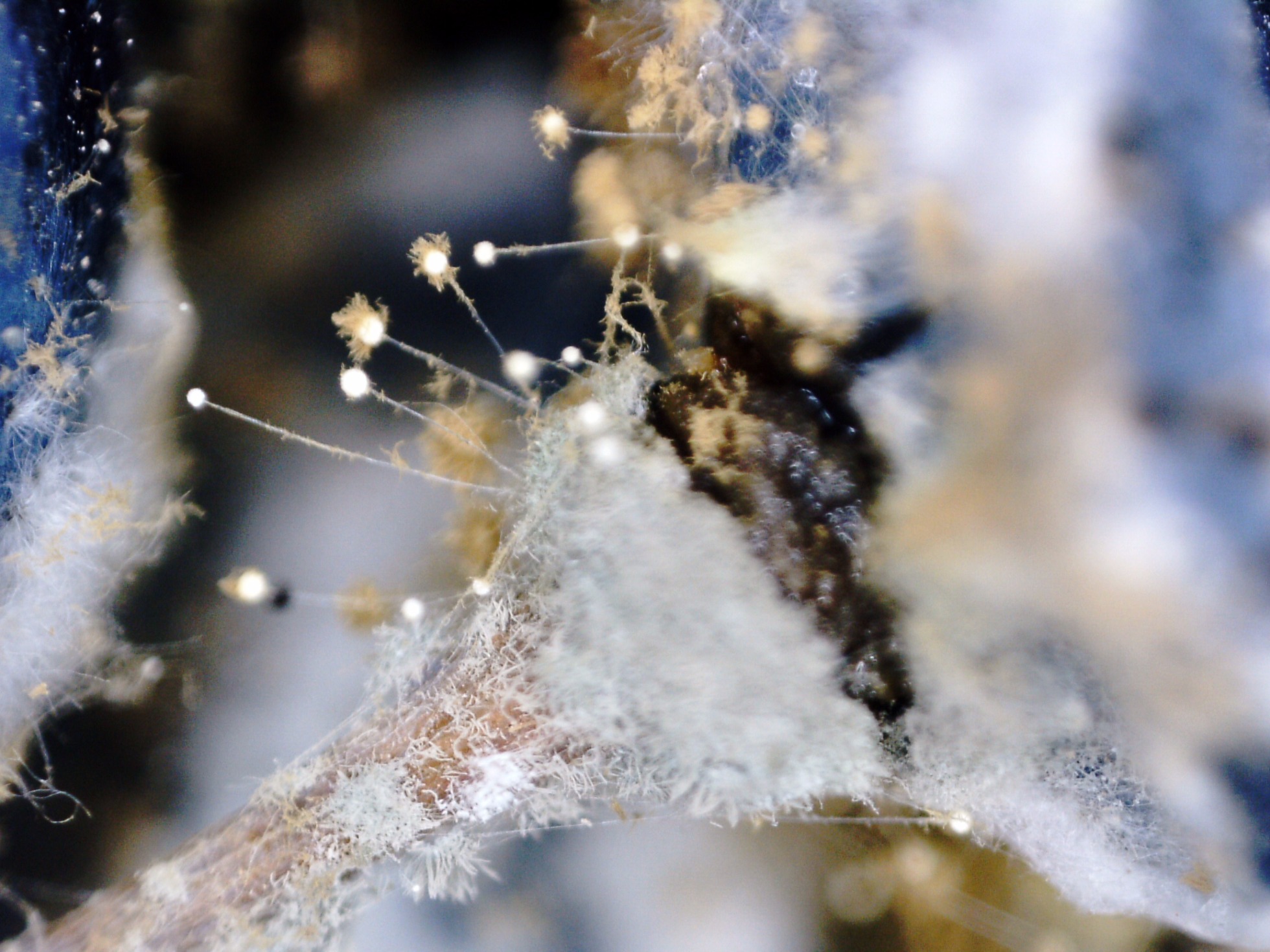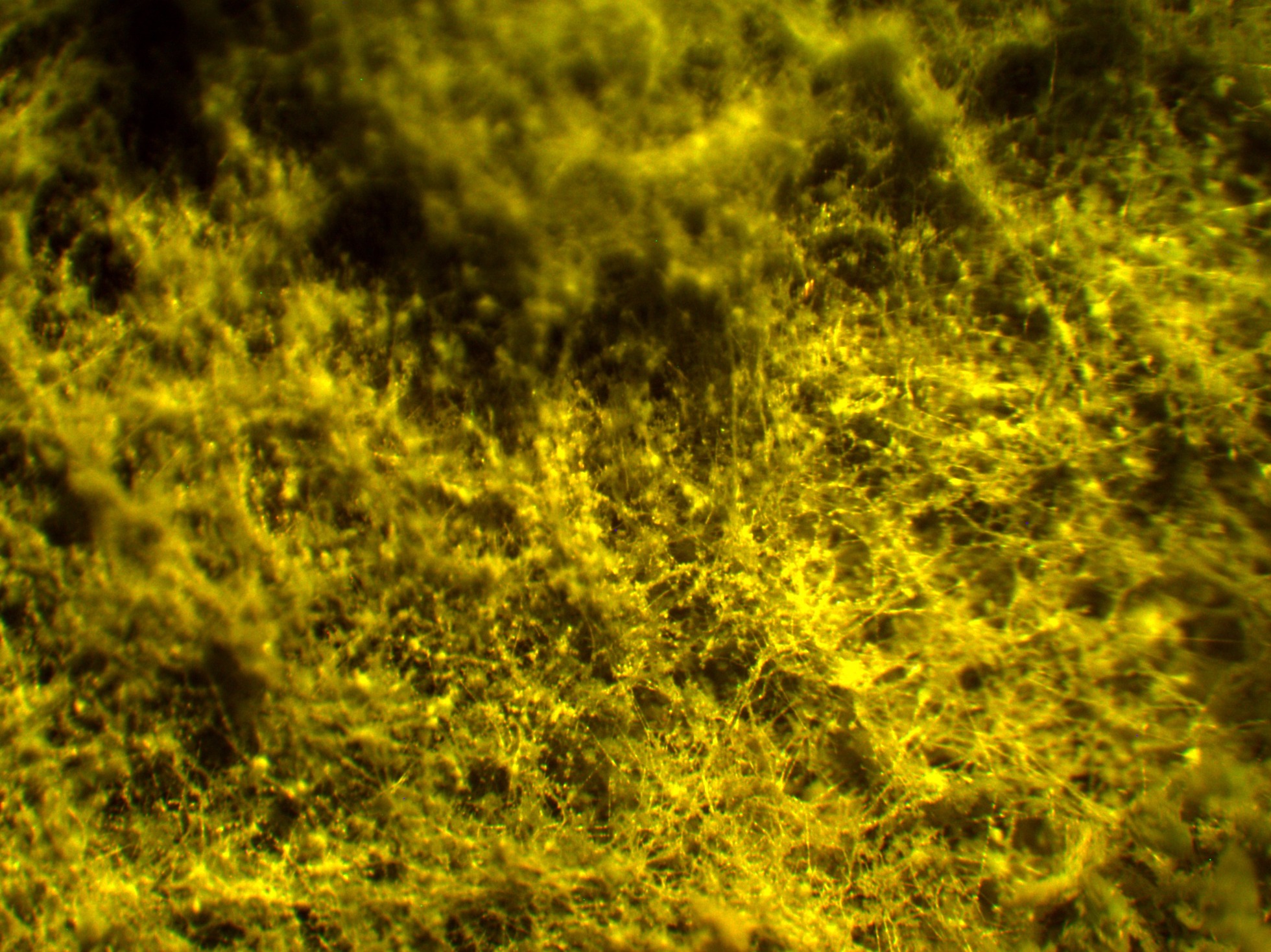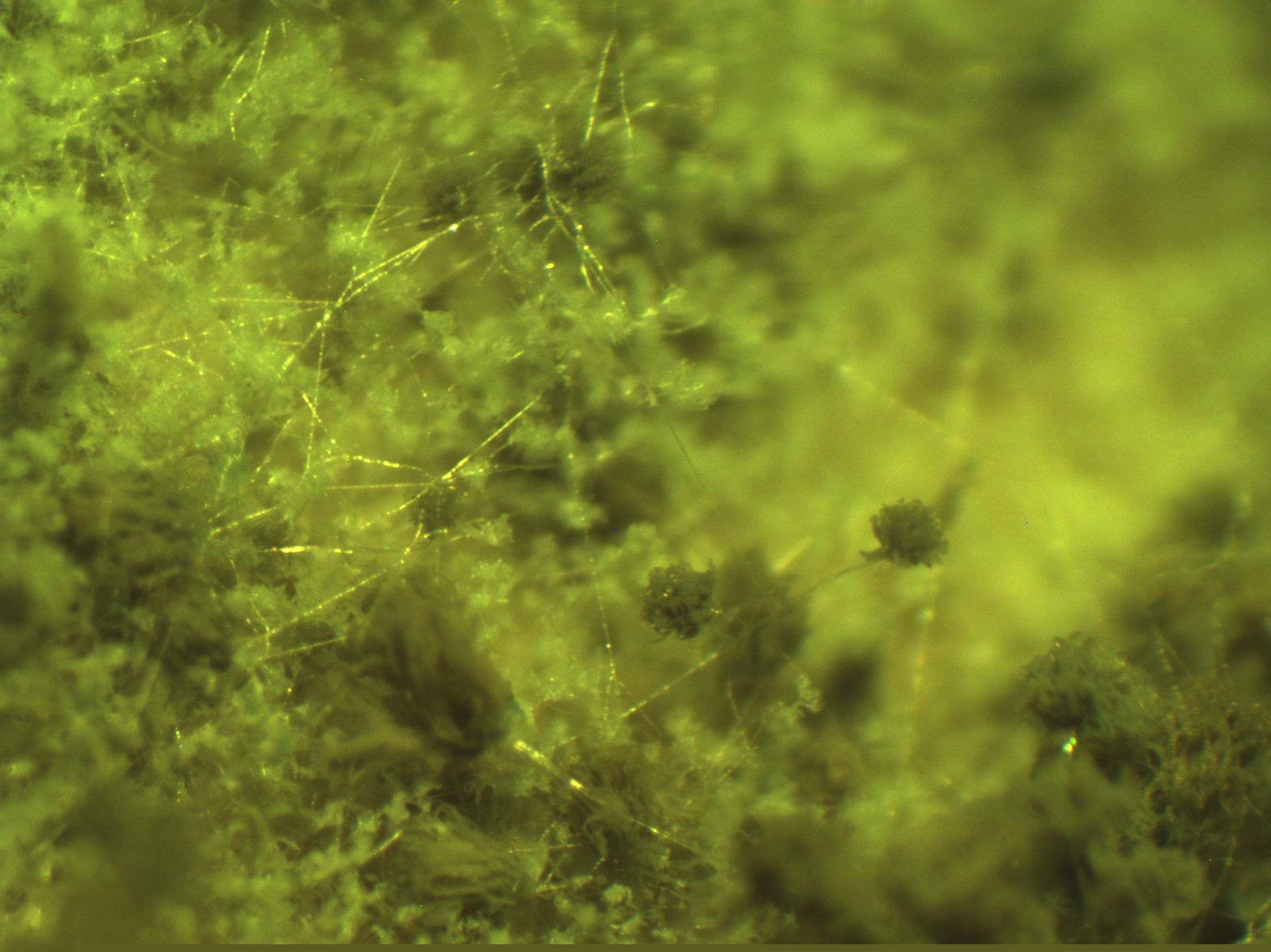 este corresponde a un entramado de hifas, el micelio que prodria estar en su primera fase o pertenecer a un tipo concreto de moho