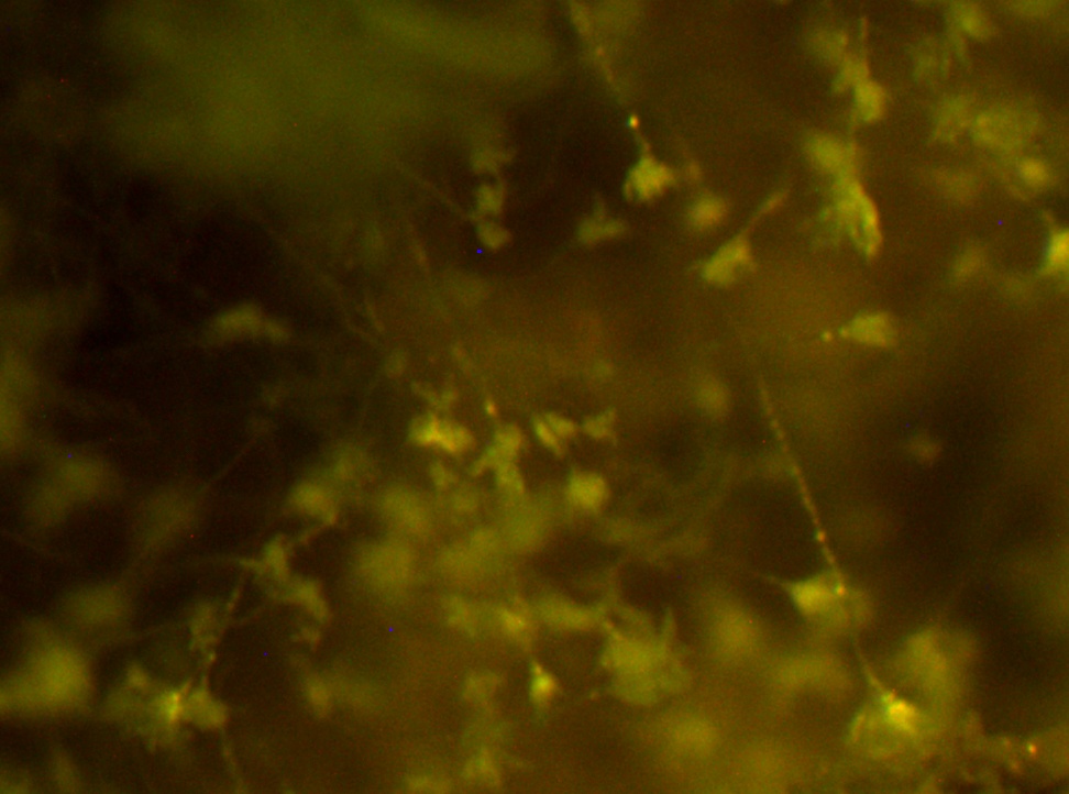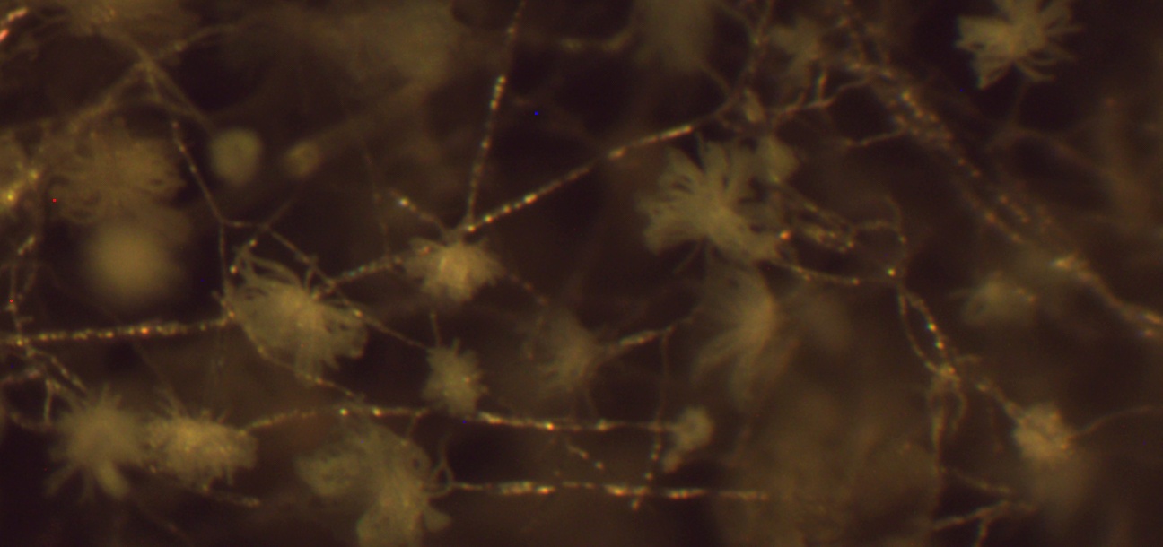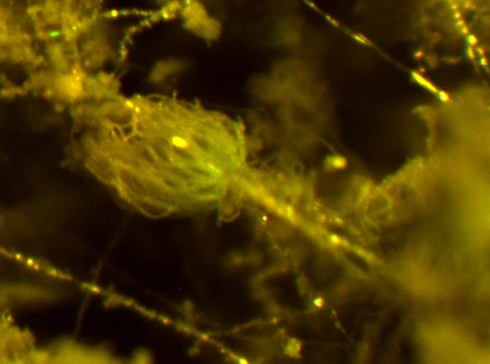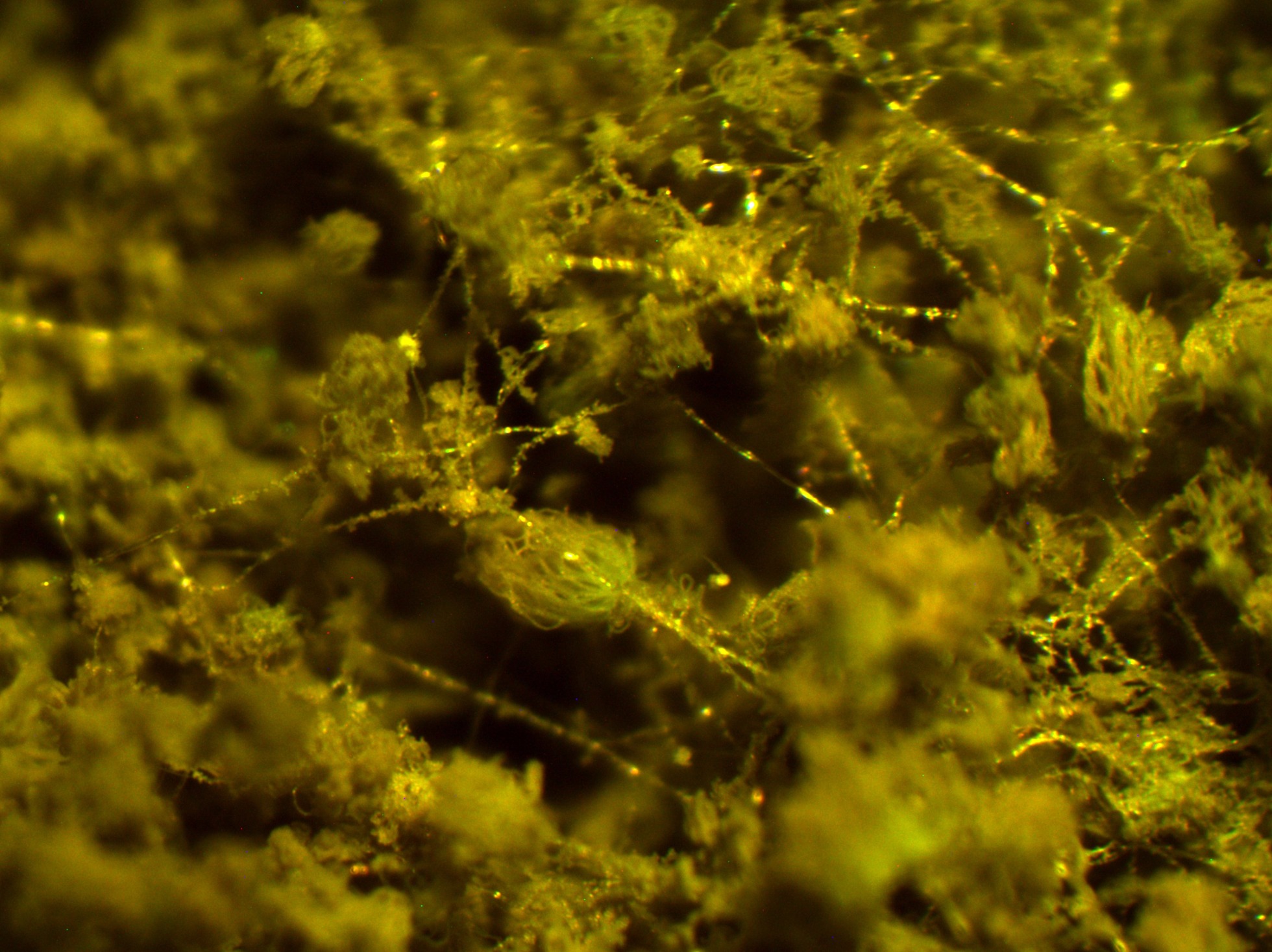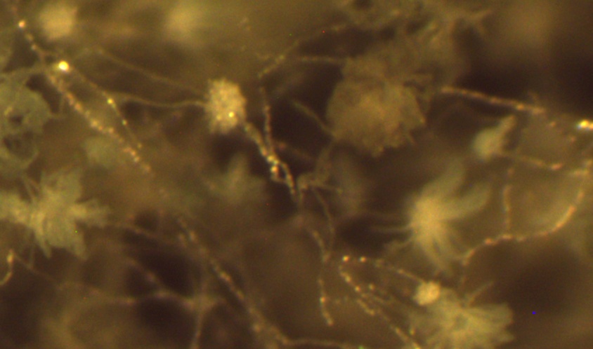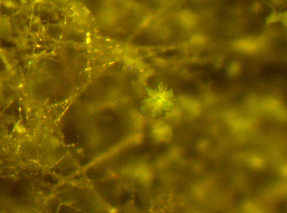 este corresponde a un entramado de hifas, el micelio que prodria estar en su primera fase o pertenecer a un tipo concreto de moho
