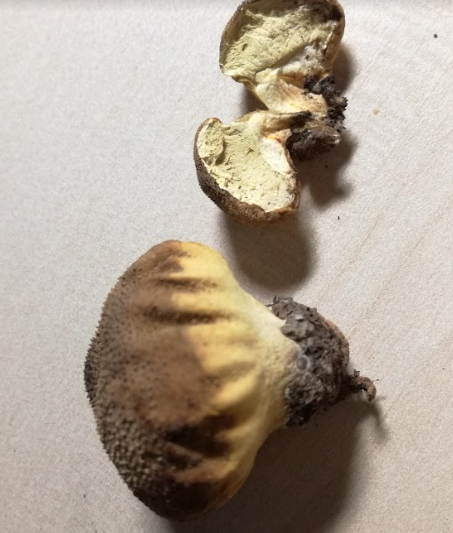 Hola Lucía, siento en el alma el no compartir la opinión de Javier, a mi modo de ver observo en tus imágenes, principalmente en la de la sección de un ejemplar joven que aún no ha empezado a esporar y que ya presenta una coloración oscura, el Lycoperdon perlatum generalmente presenta coloraciones muy blancas, sobre todo en los ejemplares jóvenes, de todas formas para poder confirmarlo es muy importante la microscopía.