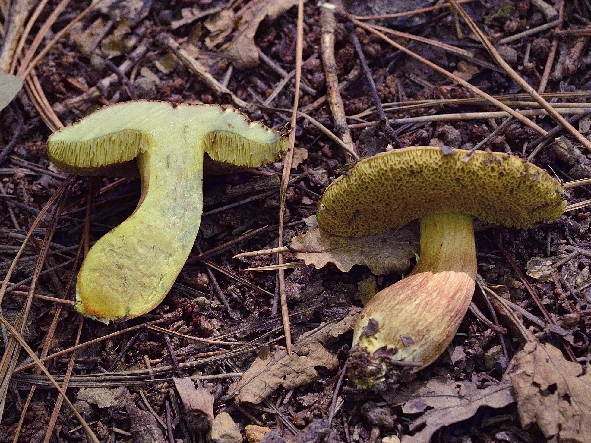 Hola Iñigo, con el primero los poros tan grandes me descolocan, parece Suillus bovinus pero por el detalle de azulear levemente al corte quizás se trate de Suillus variegatus, el segundo me parece Suillus bellinii.