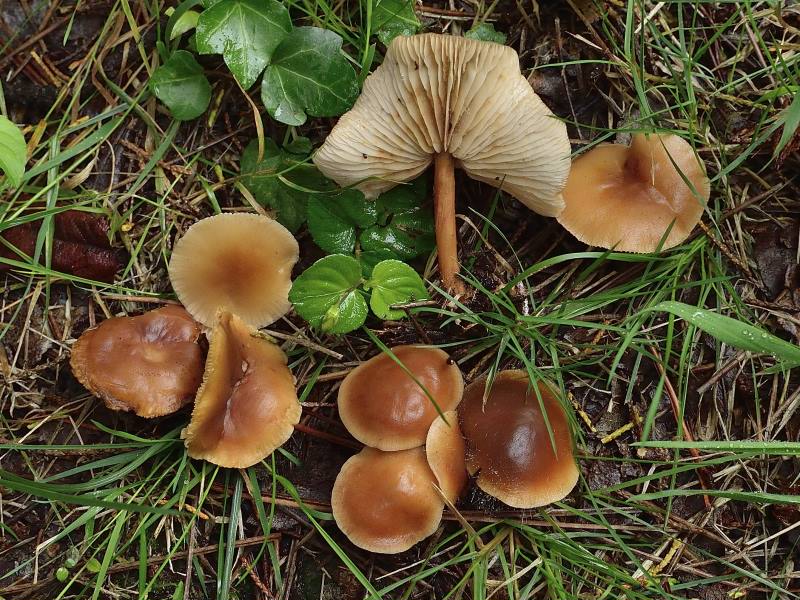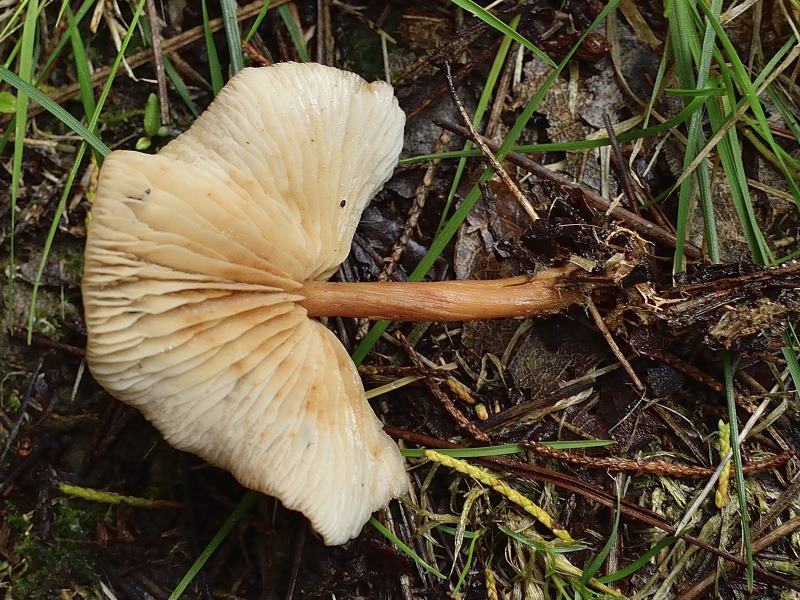 En grupos numerosos, me recordabana al genero Gymnopus pero no se si será. Sombrero de díametro desde 2 hasta 5 centímetros. Pie casi 5 centímetros. Láminas y lamelulas bastante separadas. Olo y sabor inapreciables. En zona de pinos.