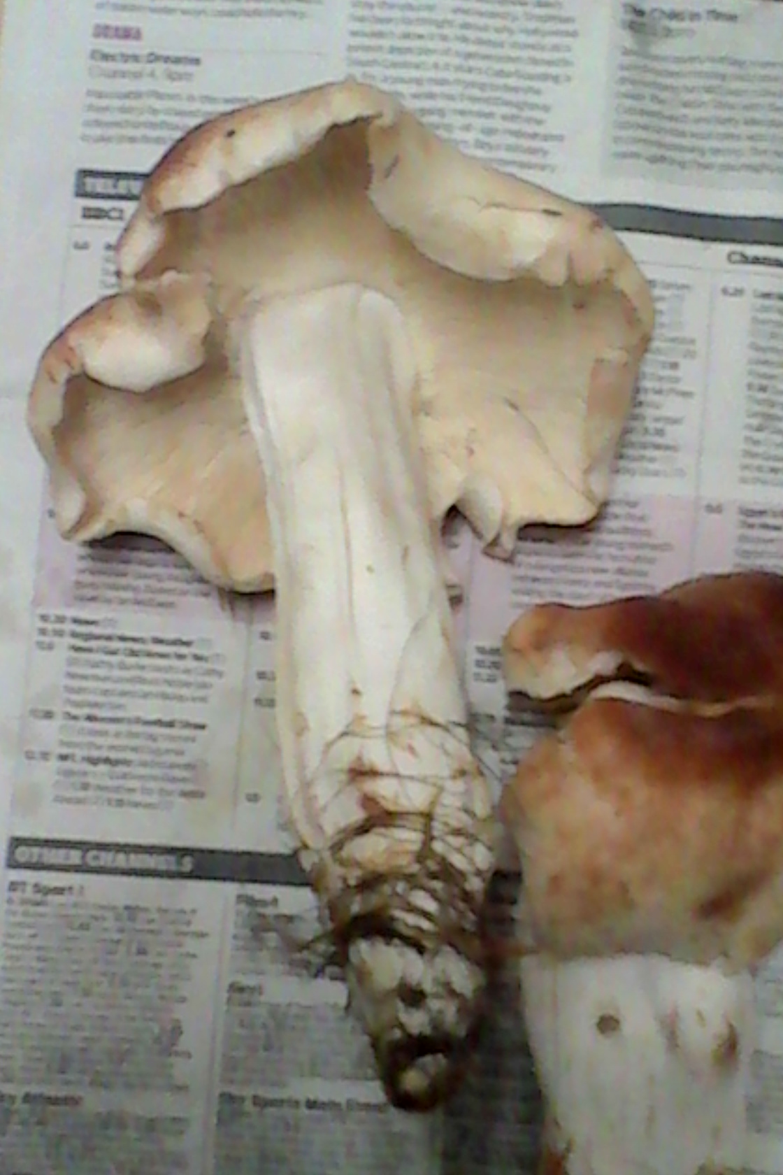 Los pies son huecos y fibrosos sin anillo ni volva. El sombrero liso y seco. Las láminas no estoy seguro de si son libres pues en zonas lo son y en otras están pegadas al sombreo, pero desde luego no son decurrentes. El olor es agradable y el sabor no amargo.