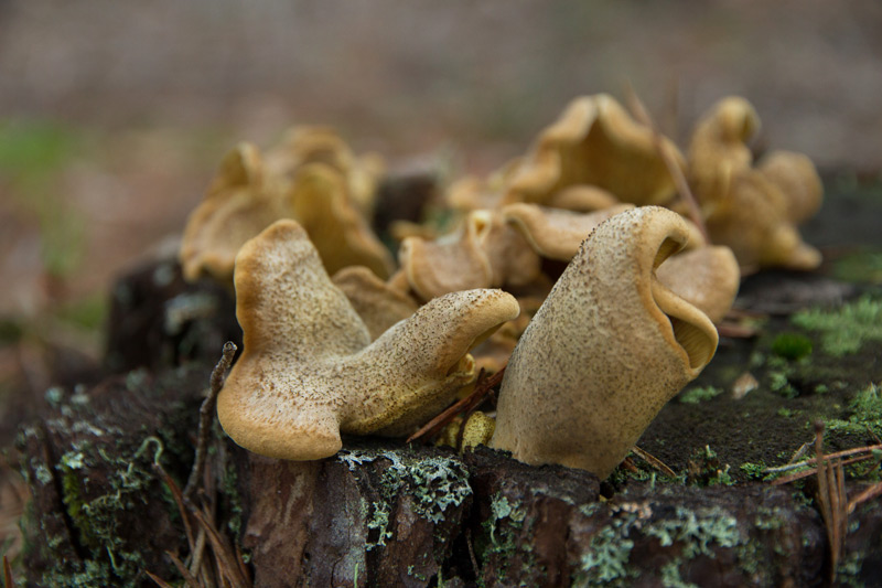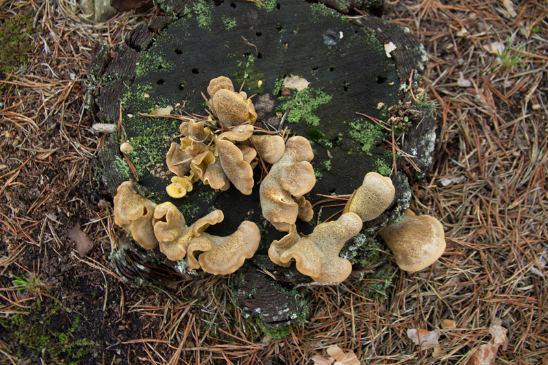 Setas en tocón de pino