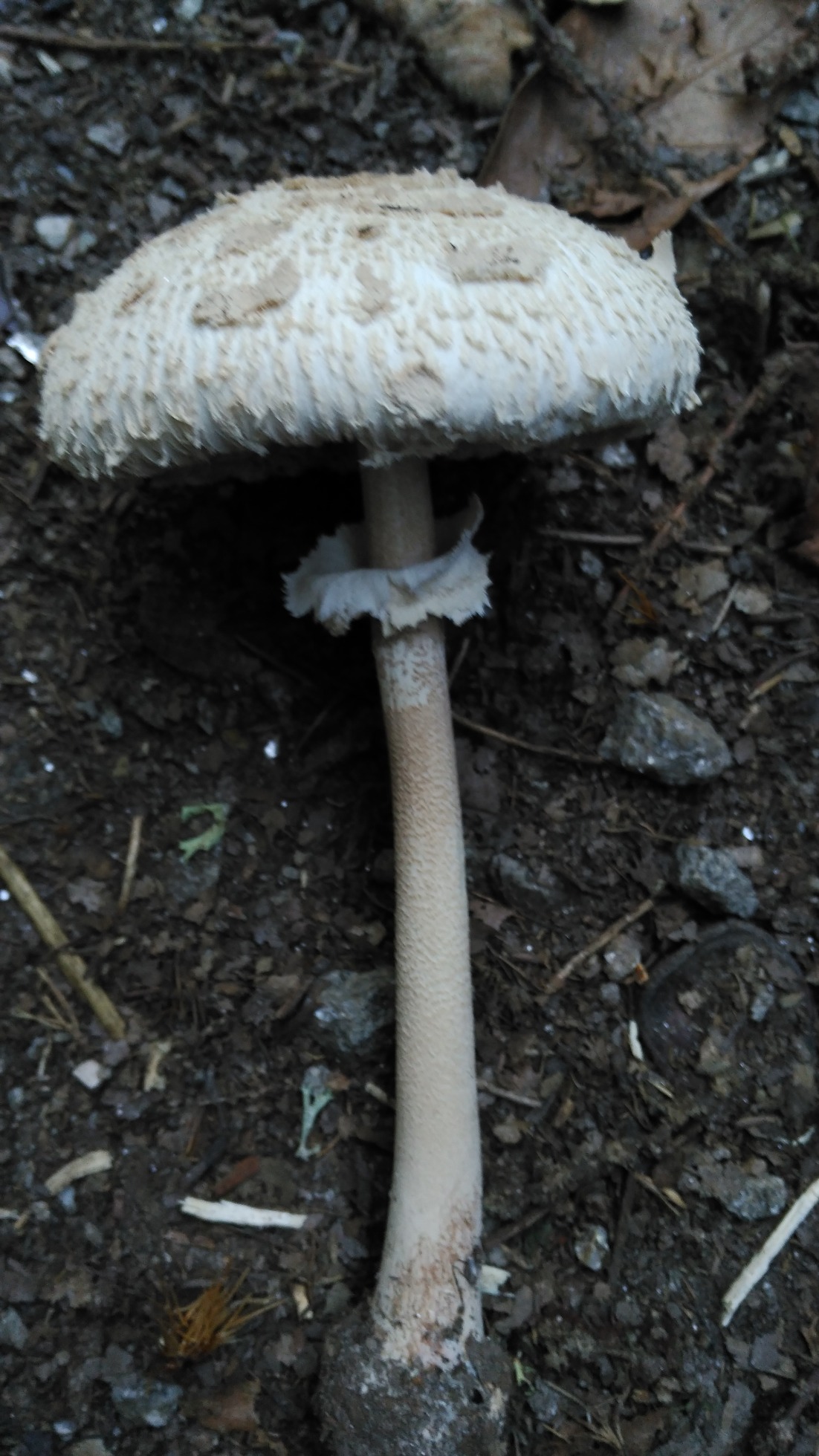 En cuanto a las segunda que nos muestras, aunque no me termina de cuadrar el aspecto de la superficie del sombrero, por el aspecto del pié no descartaría una presentación un poco aberrante de la Macrolepiota procera.
