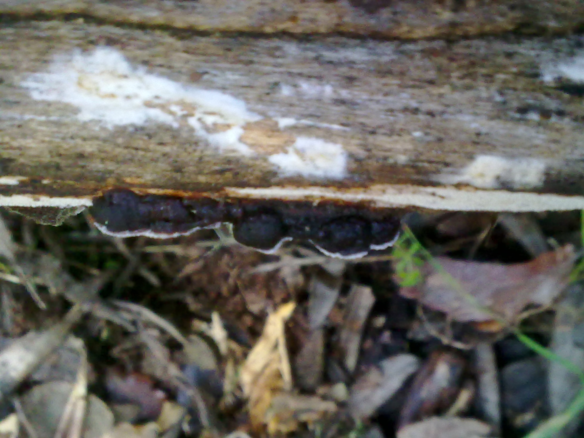 Hola compis, puede que algunos de vosotros recuerde que hace unos años me encontré con este extraño carpóforo. Al día de hoy sigo sin tener ni idea de lo que es. Estaba compuesto de un único sombrerillo alargado horizontalmente, de consistencia mas bien dura, su parte superior parece ser lisa de color negruzco mientras que en su parte inferior (himenio) era de color blanco/crema y estaba conformada por unos pequeños dientes/colmillos. Seguramente tengan relación con los carpóforos cercanos de color blamco/crema y con esos mismos pequeños dientes/colmillos que si adoptaban una forma resupinada.