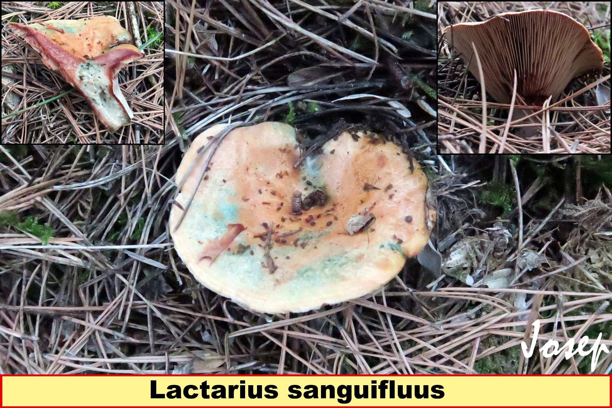 Hola Juancar, de acuerdo con Javier, solo añadir que además del Lactarius vinosus que nos ha mostrado Javier, hay también el Lactarius sanguifluus que al corte da un color rojo sangre, tanto el Lactarius vinosus como el Lactarius sanguifluus son de una calidad gastronómica incluso hasta superior a la del Lactarius deliciosus, luego tenemos también el Lactarius semisanguifluus que al corte da naranja para volverse rojo a los pocos minutos. Creo que hay una gran diferencia entre estos tres y el Lactarius violascens que al roce adquiere unos tonos violeta que en ningún caso se parecen a los Lactarius mencionados.