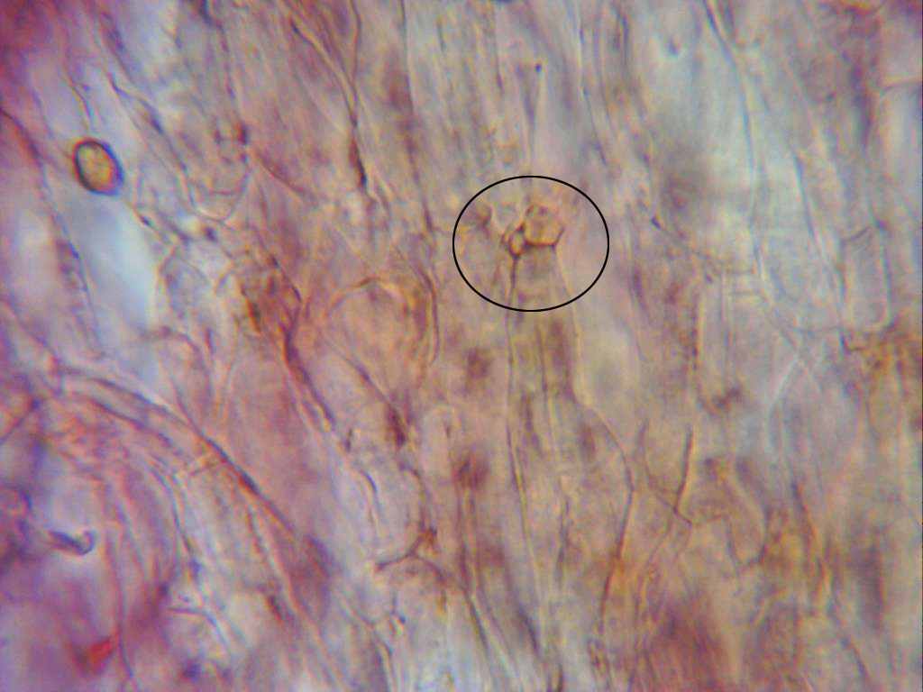 También en una de las muestras de la pileipellis me apareció esta imagen con hifas globosas, aunque fué solo en este caso me descolocó un poco la imágen.