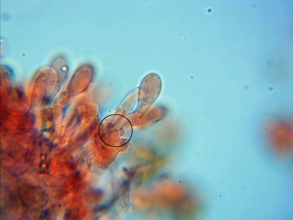 En la base de los queilocistidios también pueden observarse fíbulas.
