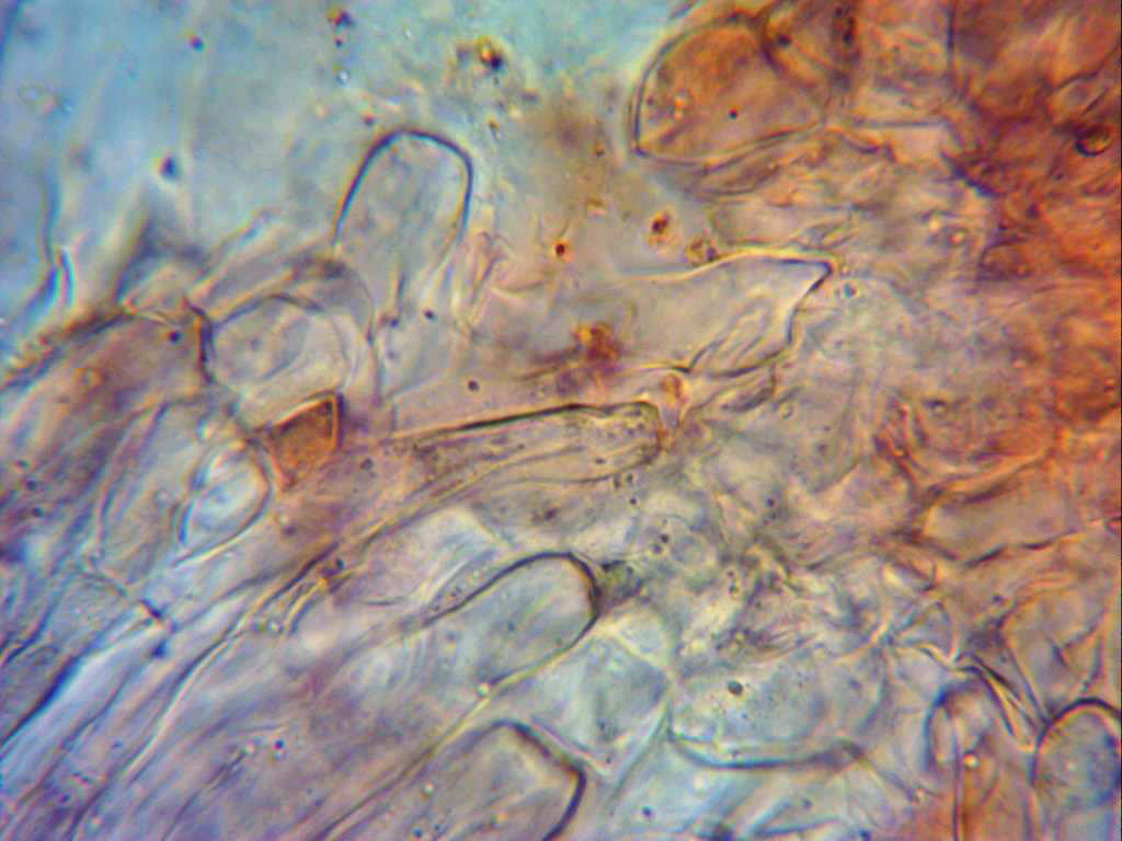Excípulo ectal con hifas globosas que superan ampliamente las 20 µm.
