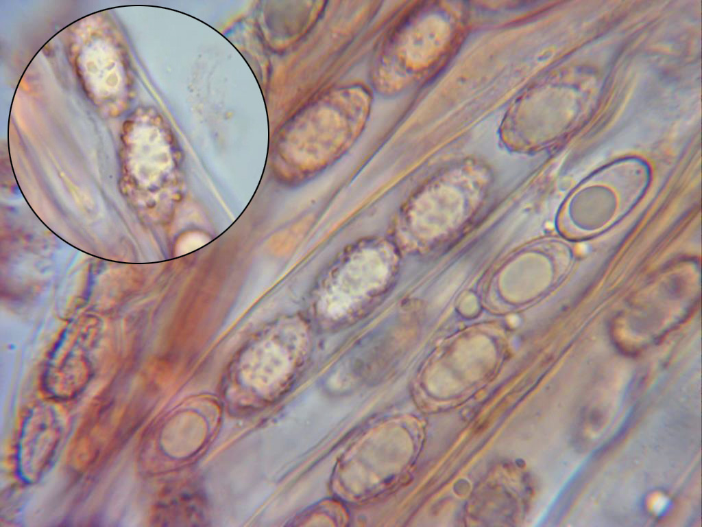 Únicamente hay dos pequeños detalles que no terminan de encajarme, el primero es que no encontré ninguna paráfisis bifurcada como citan algunos autores y la segunda es que mayoritariamente la definen como con esporas con dos gútulas y en nuestro caso prácticamente todas presentaban una sola gútula ¿....? .
