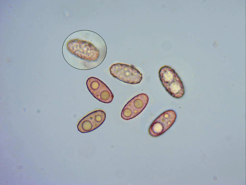 Las esporas a pesar de que algunas presentaban dos gútulas en su interior como las de la imagen, mayoritariamente las muestras analizadas presentaban una sola gútula.
