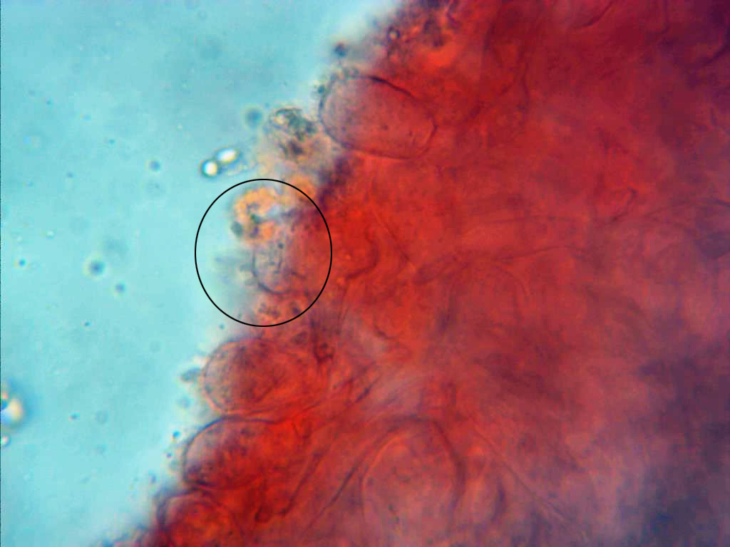 Cuando no veas los queilocistidios claros en la preparación, prueba a añadir un poco de NH3, suele mejorar sensiblemente la visualización, úsalo para para fotografiar, no para medir.