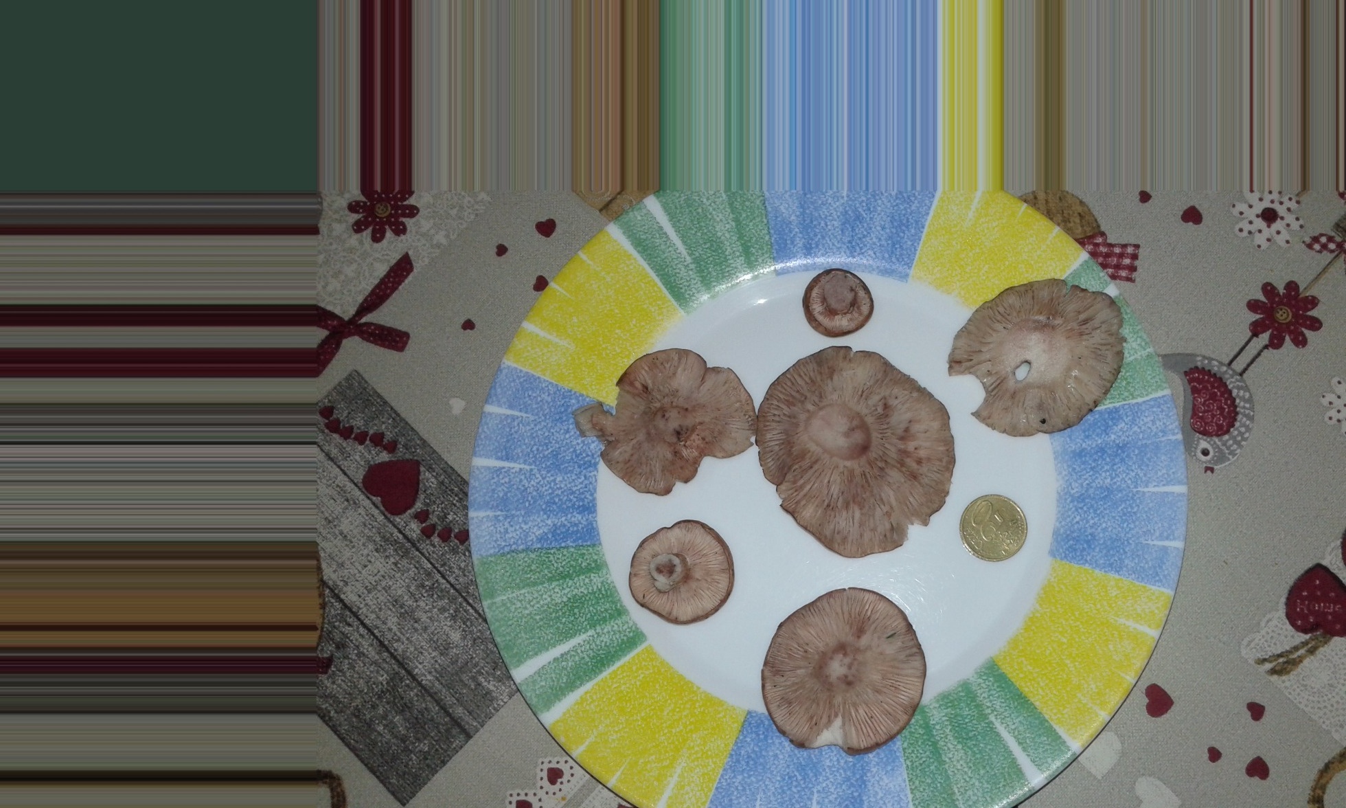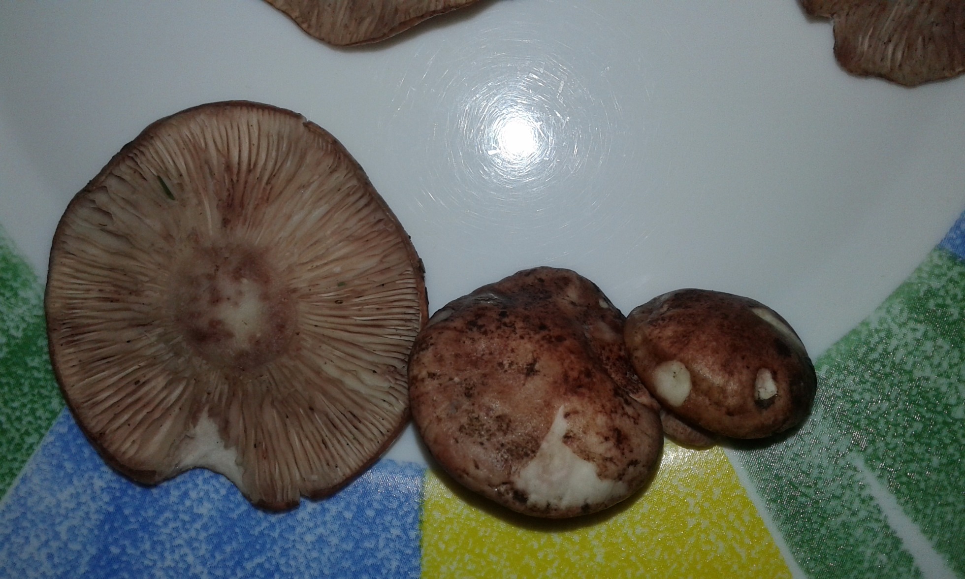Hola compañeros seteros. Necesito algo de ayuda para identificar una seta. El Domingo salí a buscar setas y en un bosque de encinas y pinos donde predominaban las encinas , encontré lo que pensé que fueran hygrophorus Russula bajo encinas, habri como unos 15 ejemplares algunos viejos y otros agusanados con lo que al final coji 5 o 6 ejemplares. Como os digo en el bosque estaba convencido de que eran hygrophorus Rusula. Pero como era la primera vez que los encontraba al llegar a casa me puse a mirar fichasmitológicas y ya no lo tenía tan claro. Russula eran porque el pie rompía como tiza y el aspecto del color del sobrero guardaba bastante similitud con hygro russula, así como el hábitat sin embargo por las fotos que vi me pareció que los ejemplares que yo cogí no tenían el sombrero tan enrollado en el margen y el olor tampoco parecía en nada a mi me huele como a rosas o afrutado o dulzón y las láminas son blancas manchadas de tonos Rosaceo púrpura vino. Haber si alguien tiene alguna otra idea el caso que por olor y porte de la seta me recuerda mucho a las lepistas como la l nuda