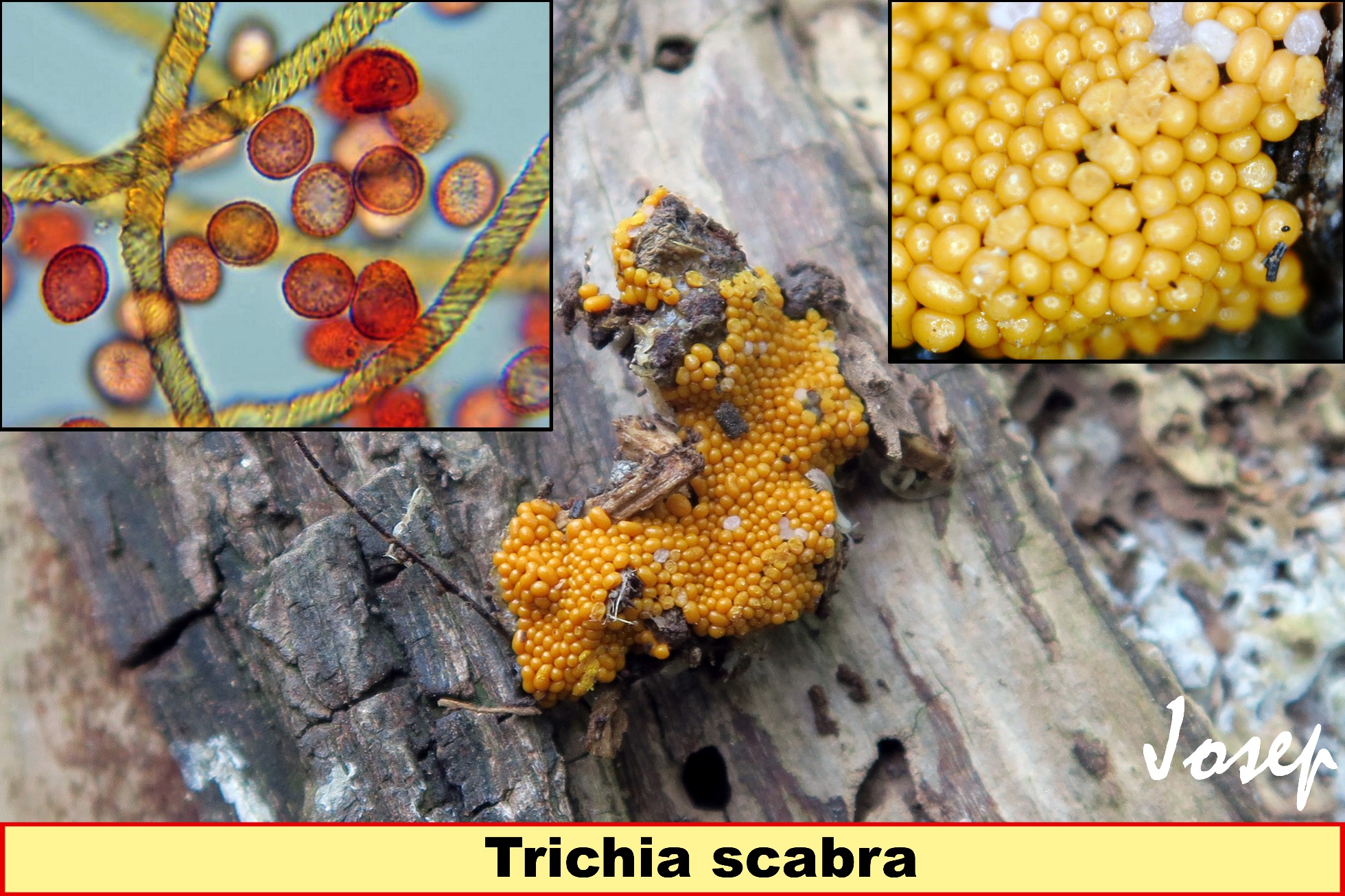 Pues yo solo estoy de acuerdo en que es una especie difícil de identificar incluso con el micro, pero vaya fallo garrafal amigo Josep, a simple vista es es imposible que se trate de la Trichia decipiens ya que en el caso de este myxo sus colores son primero rojo luego naranja y por último amarillo como explican en el enlace de esta casa.