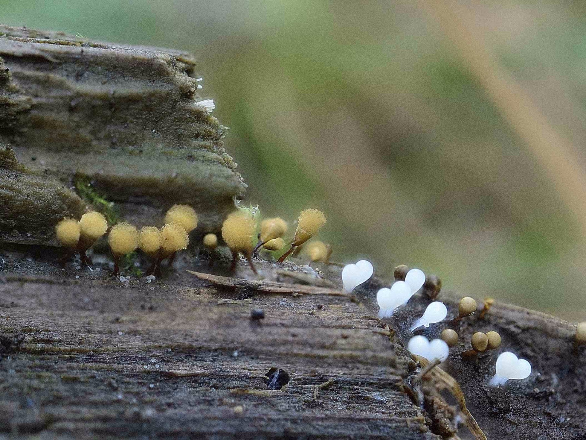 En cuanto al color de los primordios ya se indica en la ficha de nuestra casa que este es muy variable, dejo unos enlaces de unas imágenes de primordios de Trichia decipiens bastante acordes con la propuesta de Iñigo.