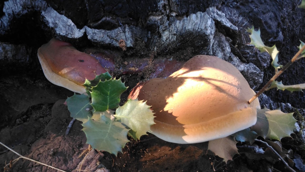 La verdad es que tenia bastante seguridad con el Ganoderma aplanado, por las consultas en guías y sobre todo por el tamaño -unos 40 cms- y la forma en abanico, pero nunca se puede estar seguro del todo.