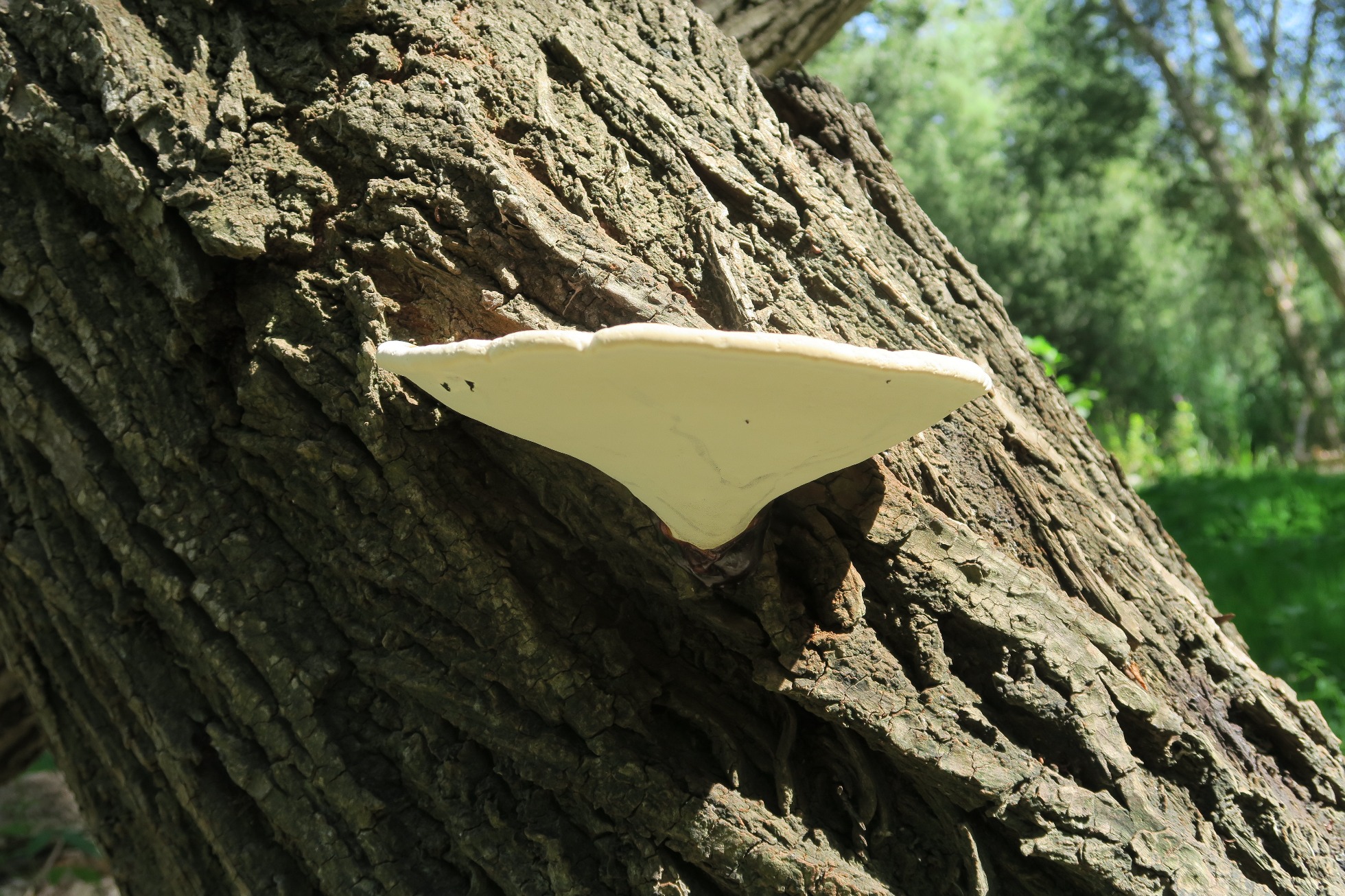 Esta imagen está tomada hace cosa de un mes, sobre madera muerta de chopo. No me parece F. fomentarius, ni I. hispidus, ni Ganoderma aplanado; no sé con que se puede corresponder.
