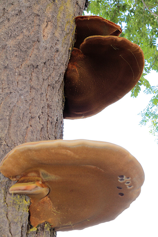 Te dejo un par de imágenes mías una de Fuscoporia torulosa y otra de Inonotus hispidus.