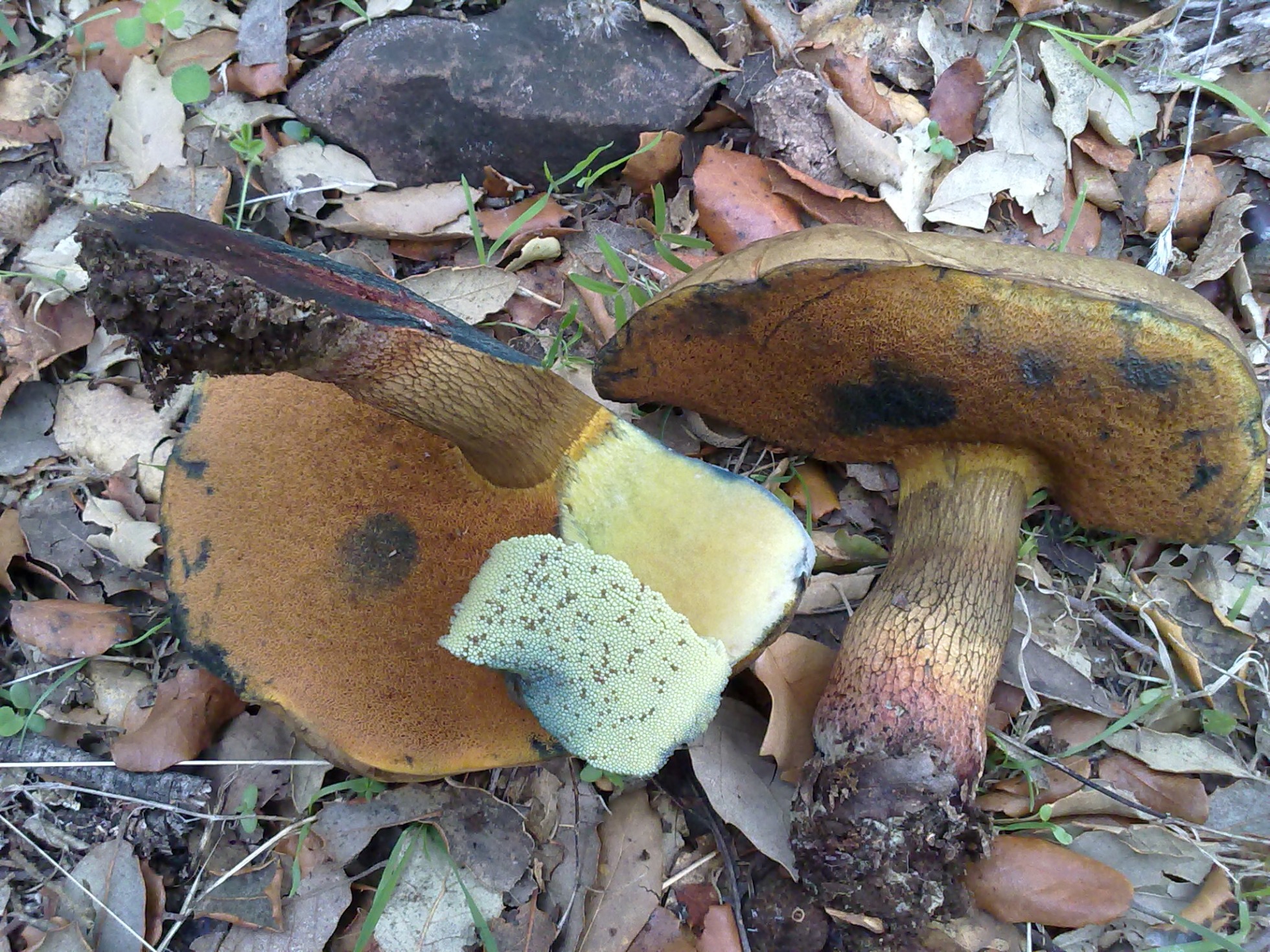 Otra forma de poderlas separar es con yodo; en el caso de ser Boletus caucasicos no hay reacción y de ser B. luridus oscurece casi al negro, dicha prueba no la he realiza por el momento.