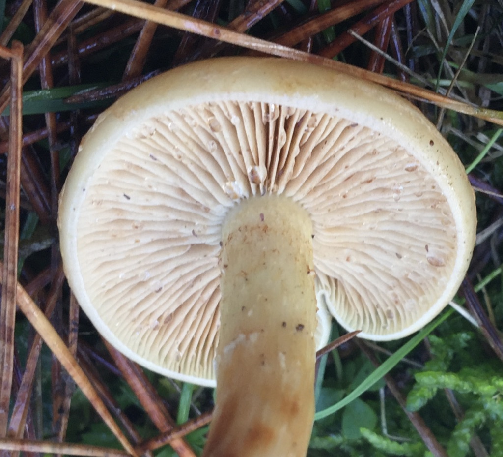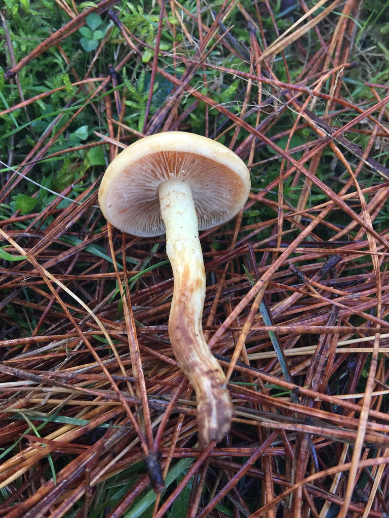 Creo que se trata de la que propone Joseba, he mirado en "Setas y Hongos de Navarra" y coincide bastante casi toda la descripción, incluso el detalle de la "zona anular", también la situación bajo coníferas, en Miko D.B. de Francia la sitúan bajo coníferas.