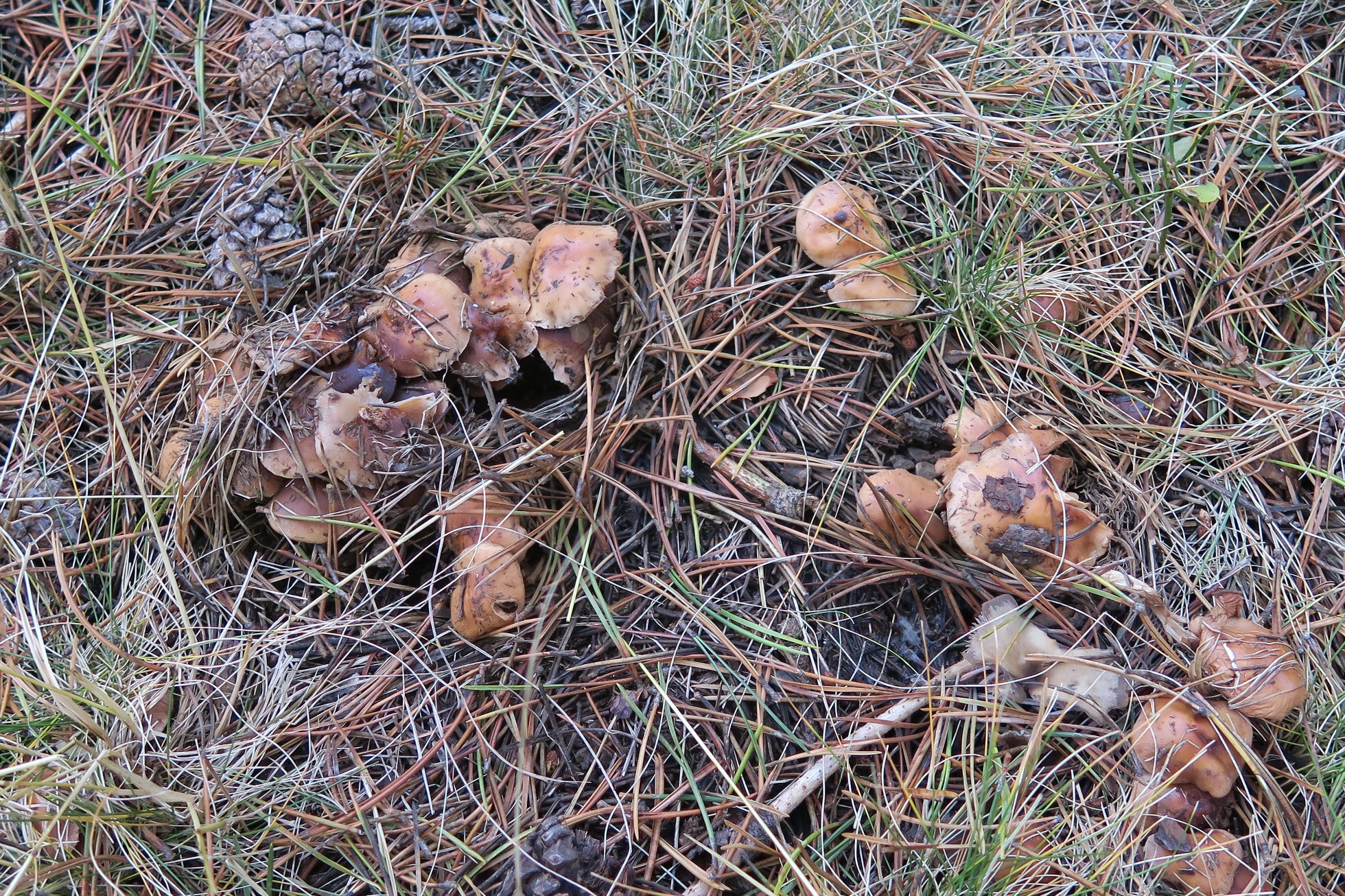 Uff. Juan Antonio, pues viendo estas imágenes me inclinaría más por Hebeloma sp, tratándose de pinares y aventurando mucho, por la longitud del pié quizás, pero solo digo quizás, Hebeloma longicaudum, de todas formas vamos a esperar a ver que opina Joseba.