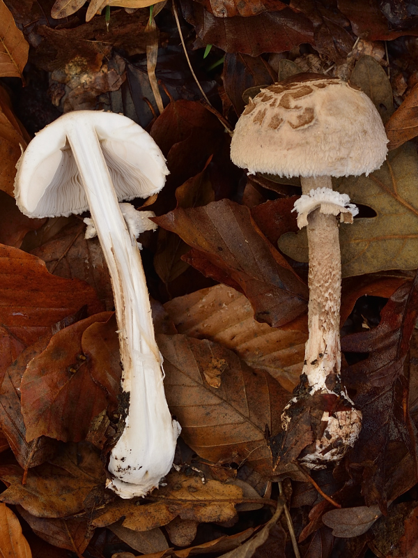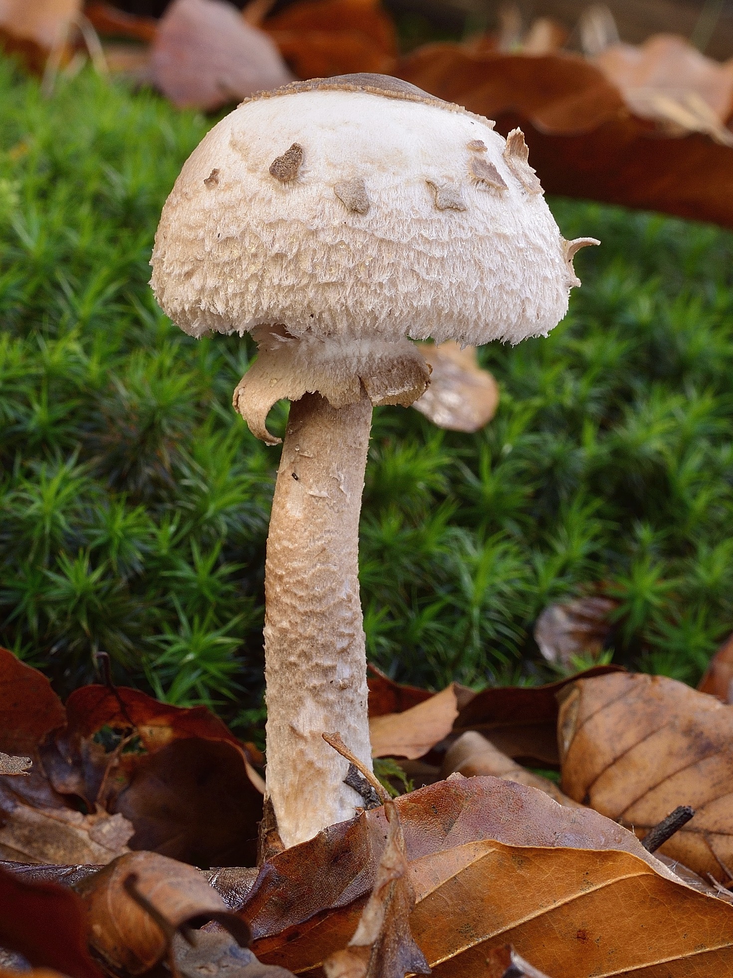 Aupa Iñigo, ese zigzag en el pie, el anillo tan prominente, una talla algo menor que la procera y sobre todo esa manera de resquebrajarse las escamas en el sombrero...para mi Macrolepiota konradii