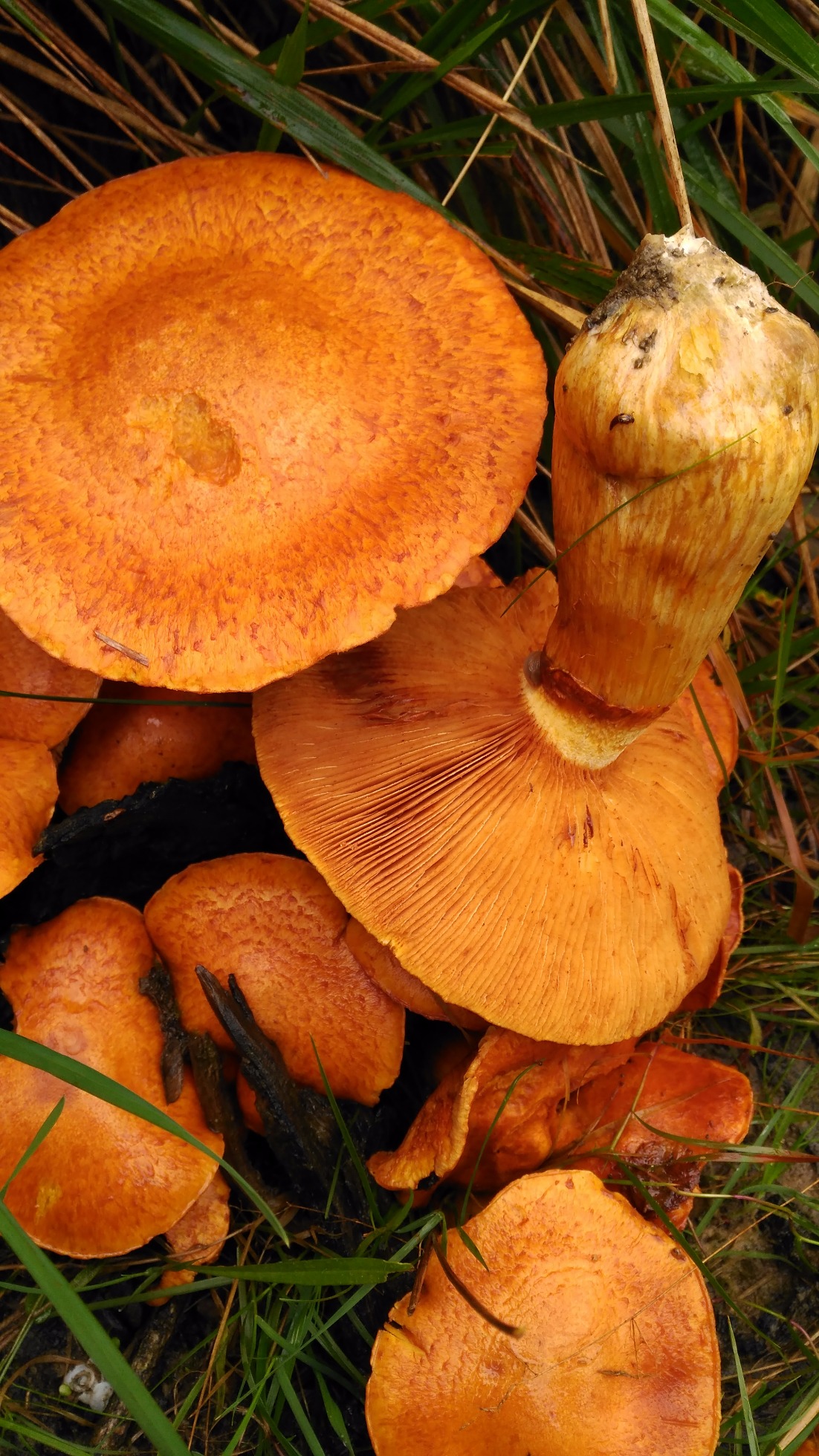 me la he encontrado siempre en tocon de pino en descomposicion, mi propuesta podria ser alguna estrofaria o cortinarius?.