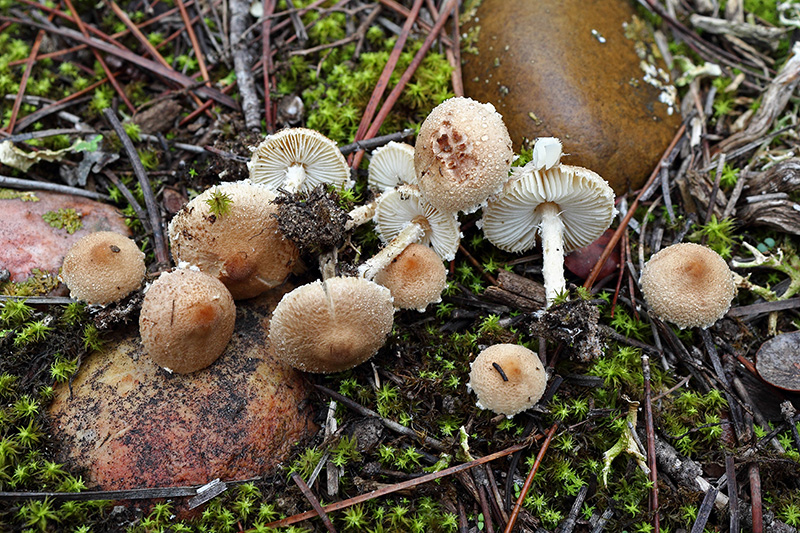 4. Cystoderma amiantinum? Aunque según la ficha de la casa hay uno muy parecido, A. jasonis, que realmente se parece bastante. No encuentro suficiente información, pero parece que se encuentra en bosques de abetos con hierba, y no sería el caso.