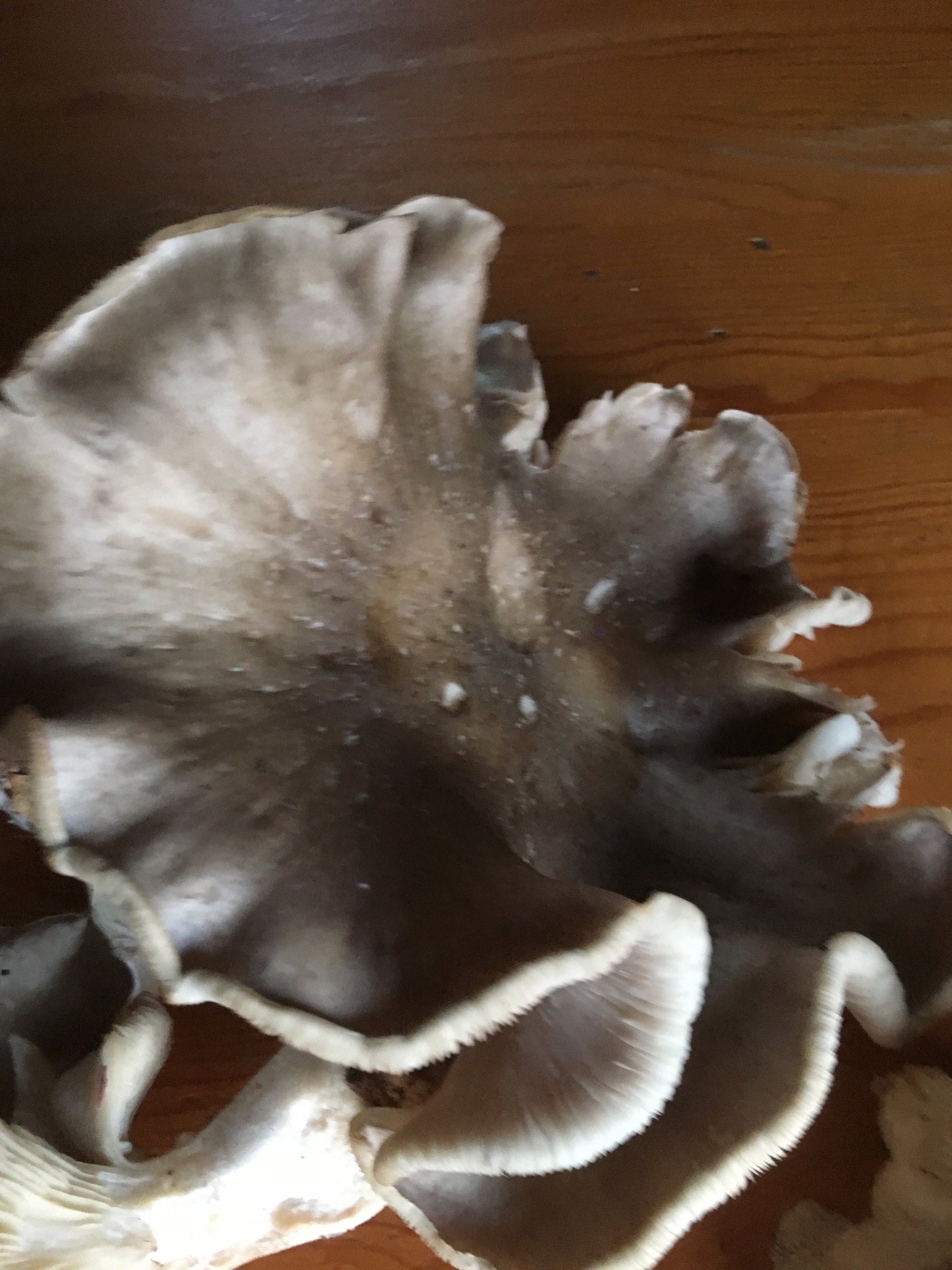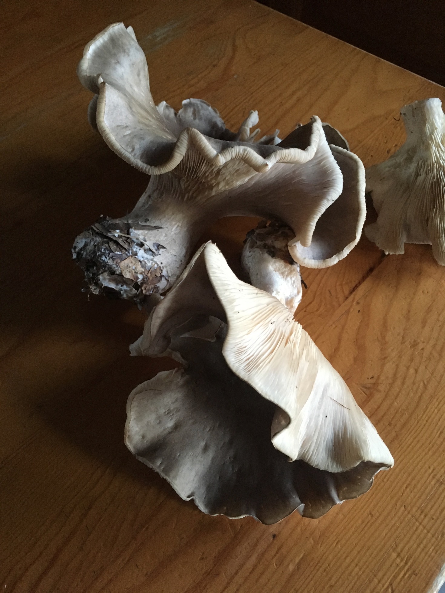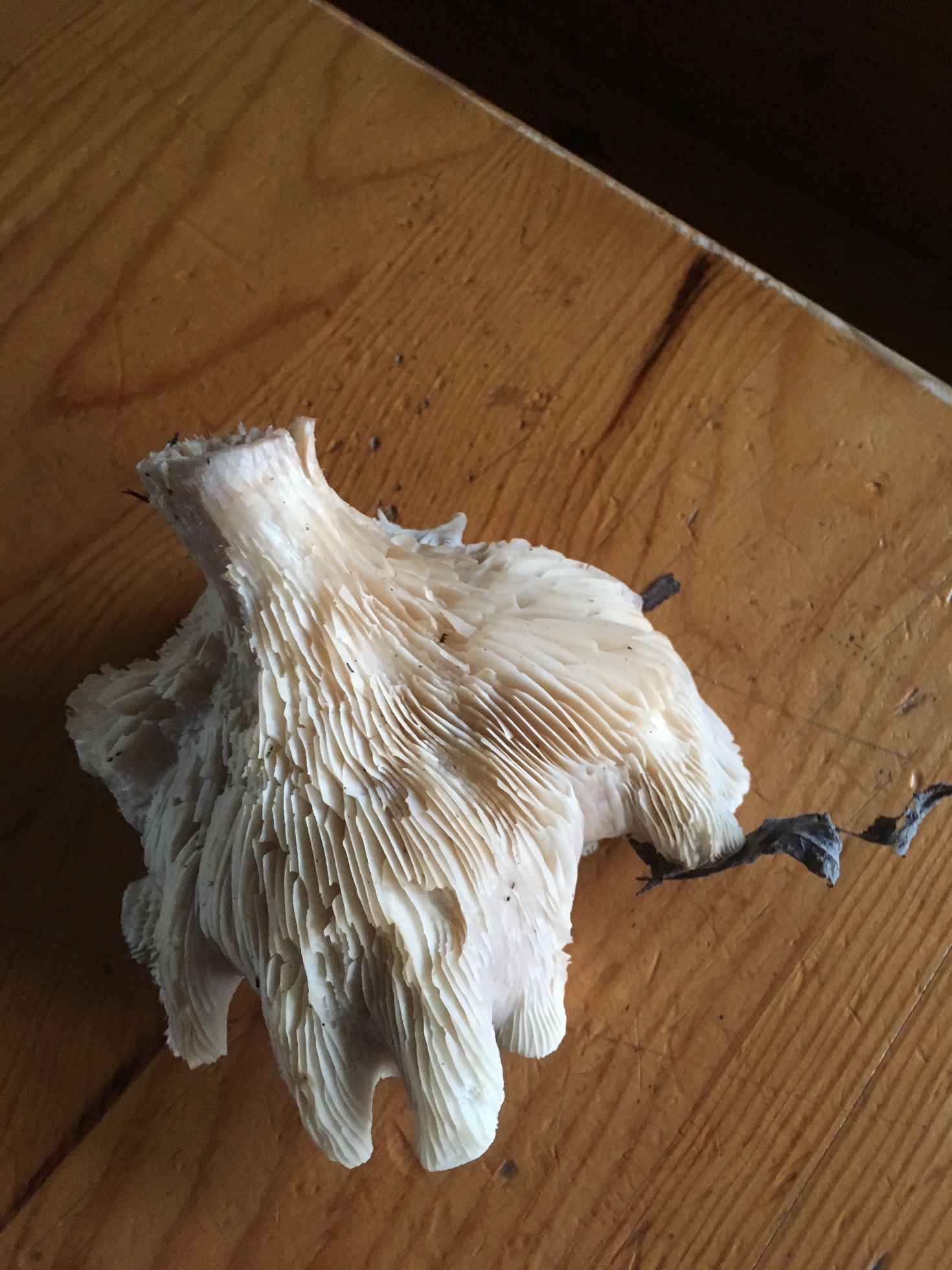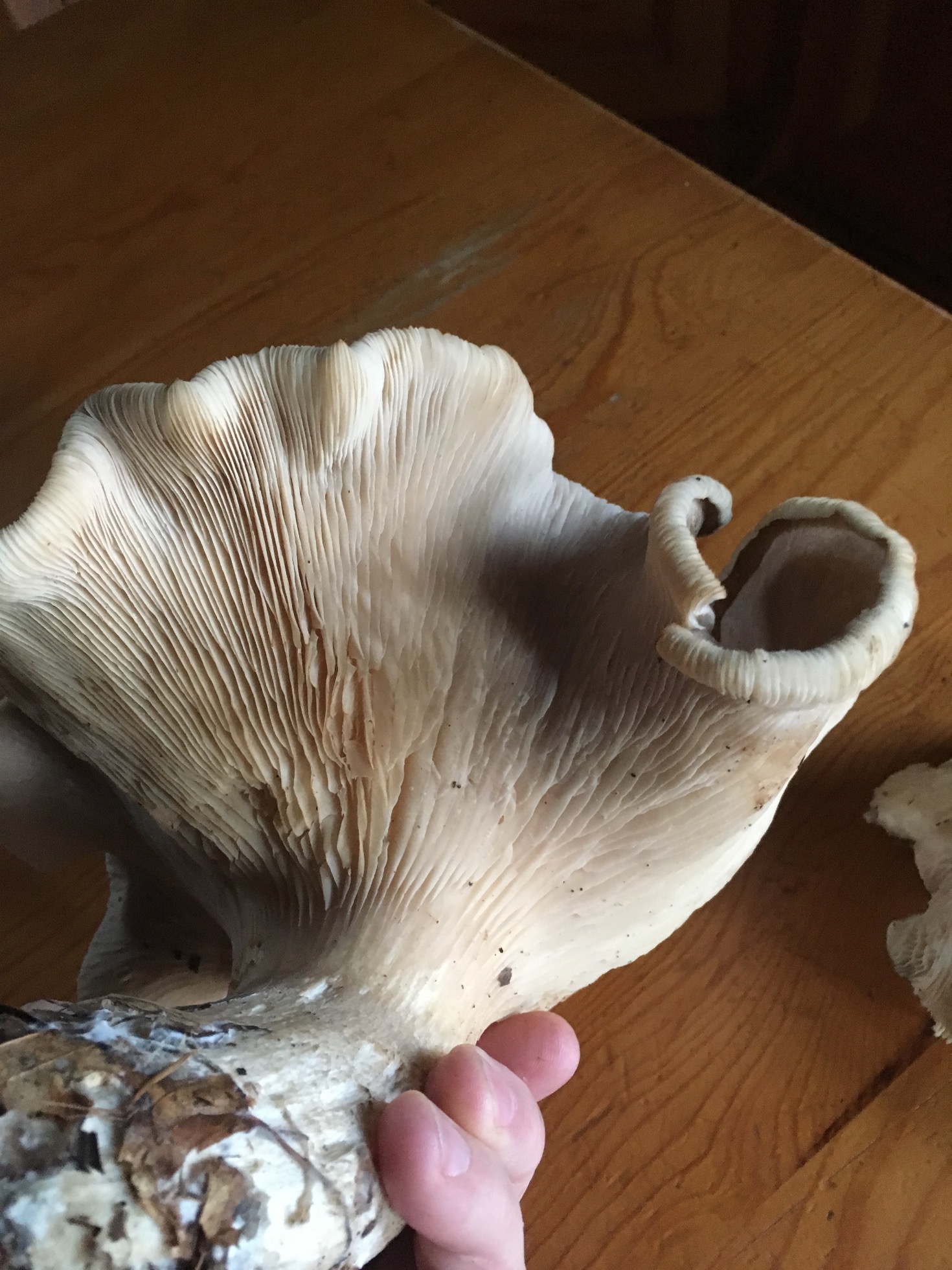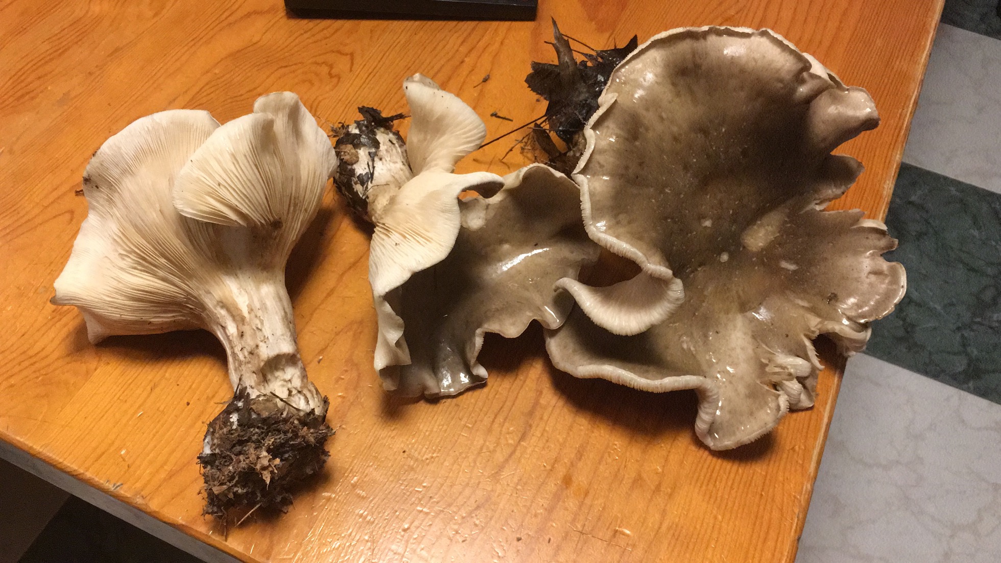Otra opción sería la de Clitocybe nebularis un tanto especial, últimamente están saliendo muchas.
