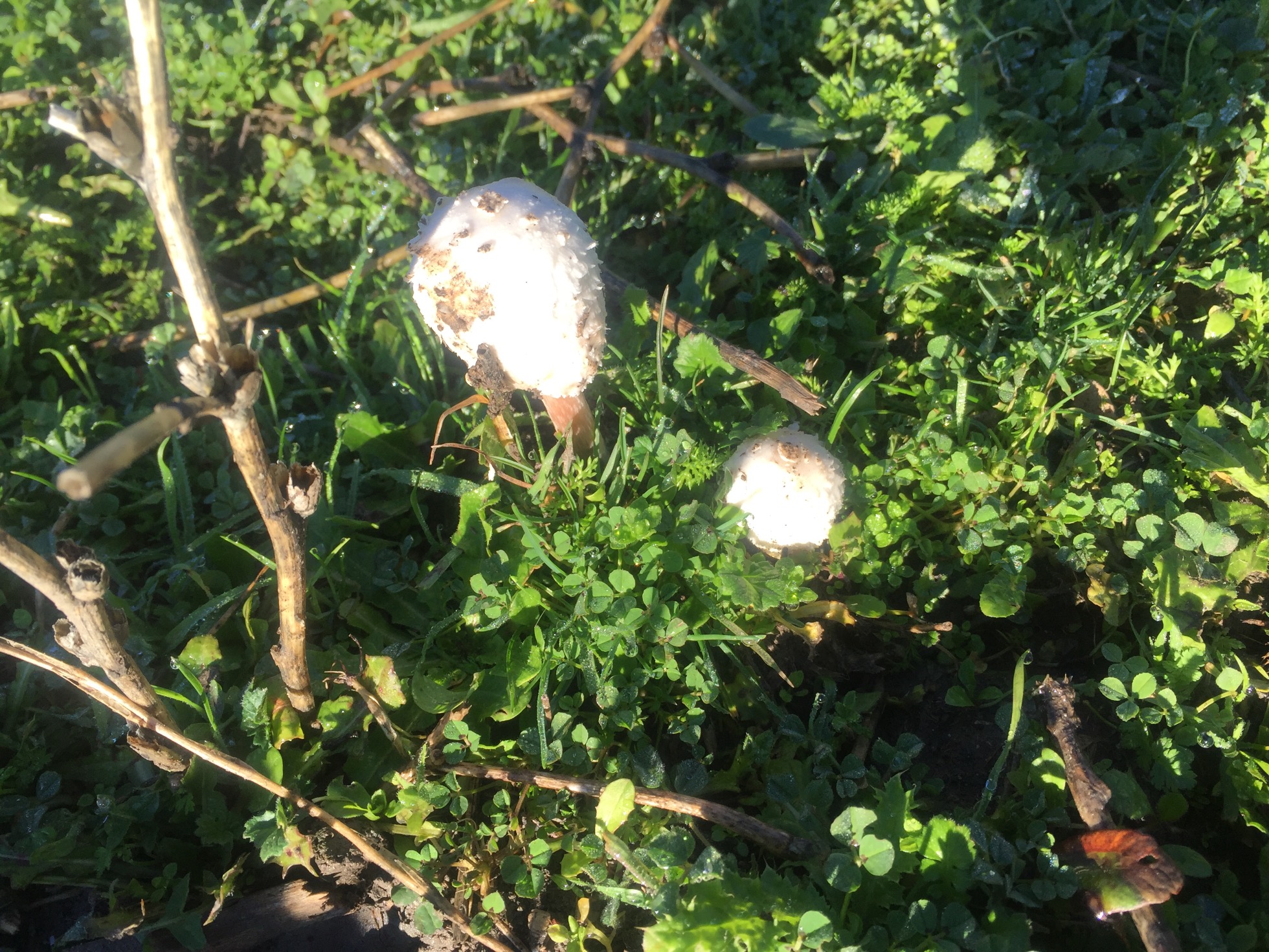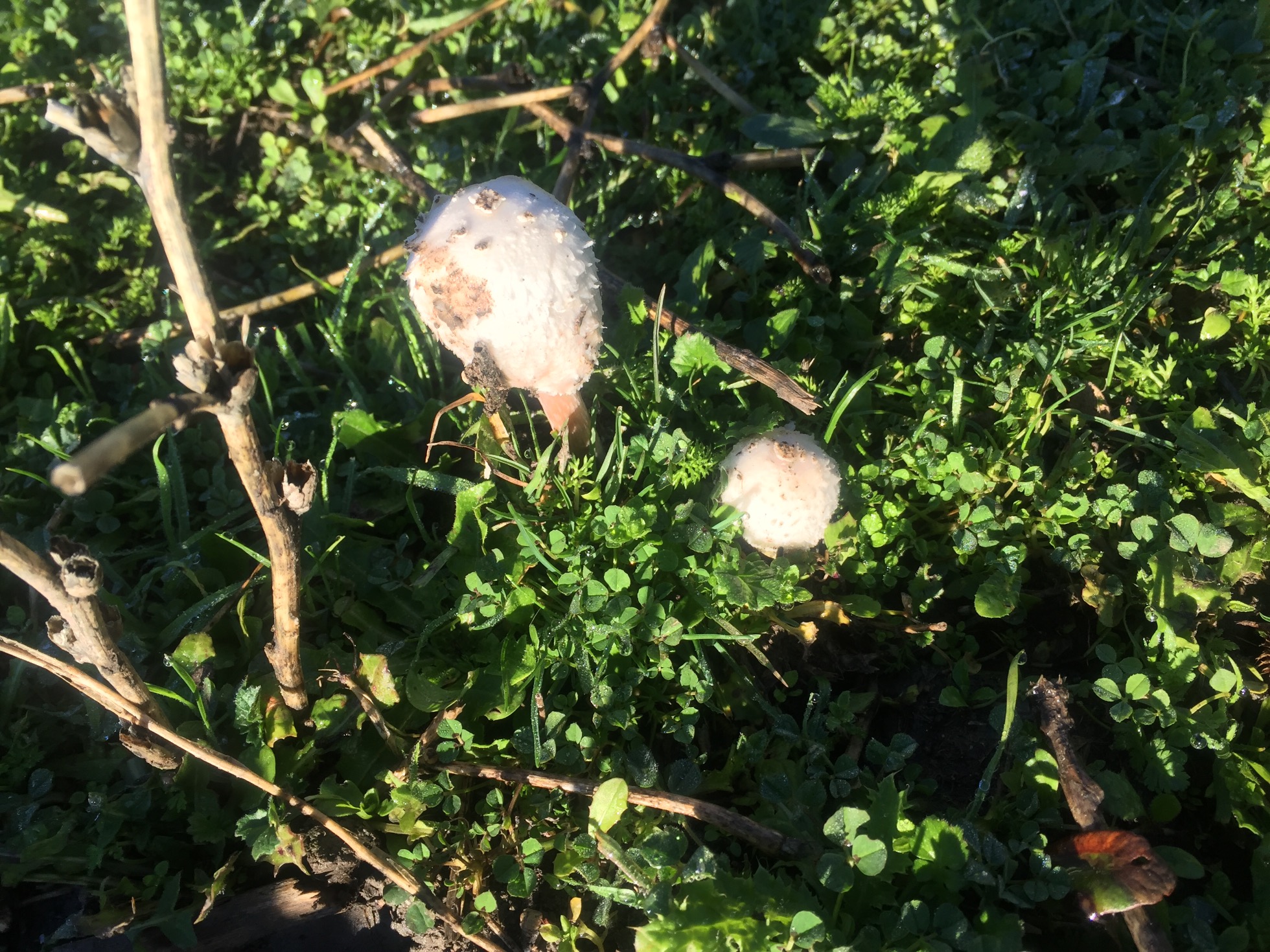 En cuanto a las dos primeras imágenes por proponer alguna, por el detalle de rubescente, quizás se trate de unos primordios de Chlorophyllum rhacodes, aunque con muchas reservas.