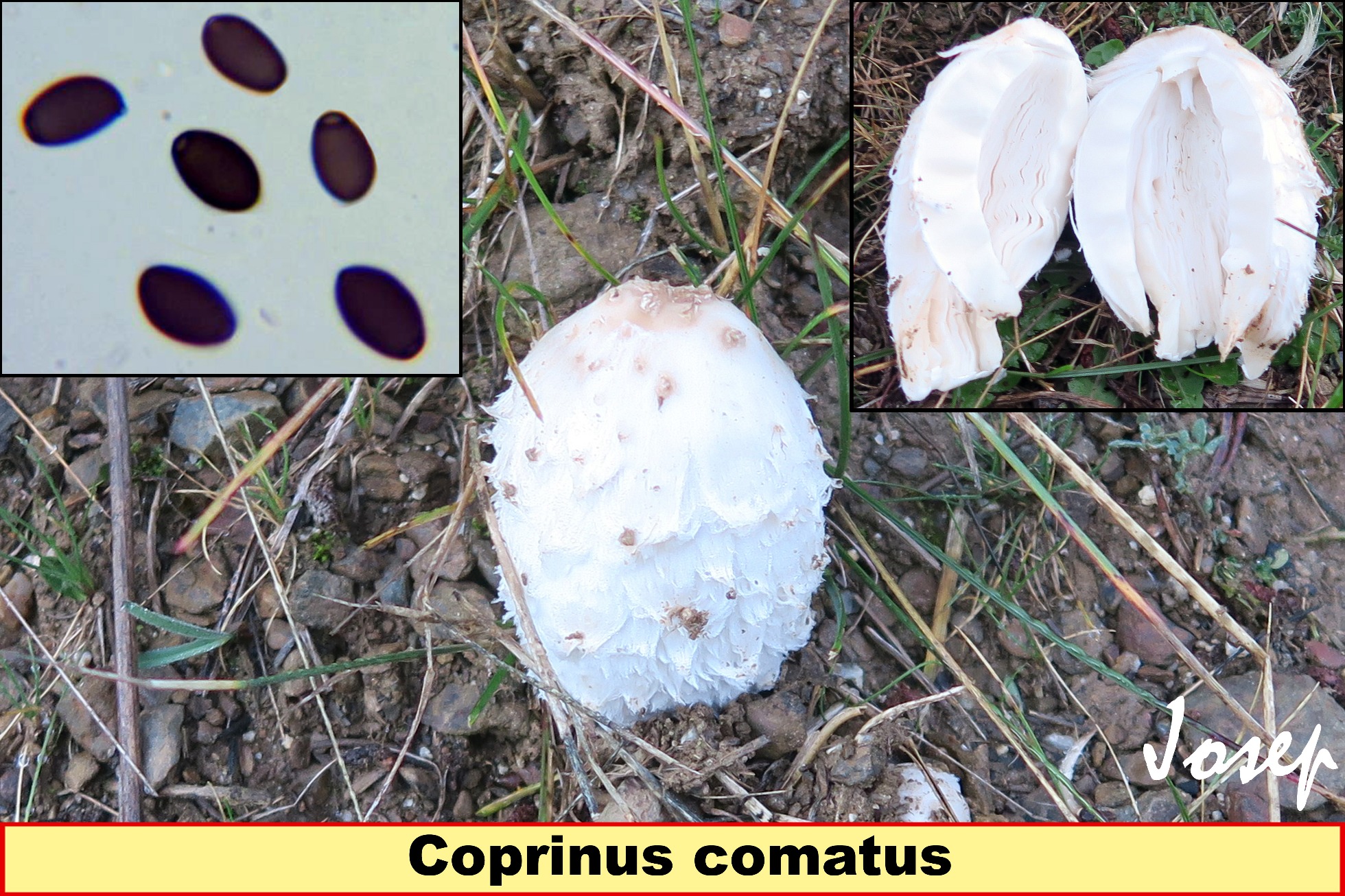 Te dejo una imágen mía de las tres, Chlorophyllum molybdites, Coprinus comatus y Volvopluteus gloiocephalus.