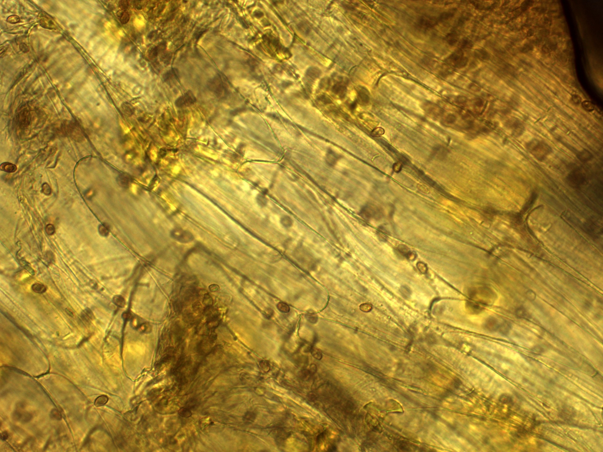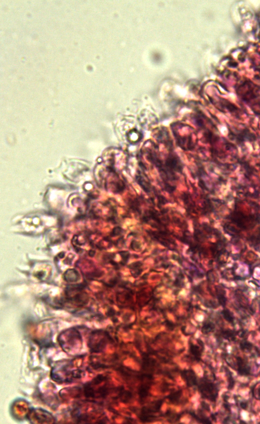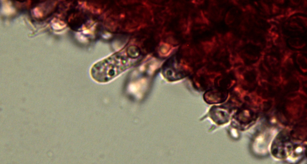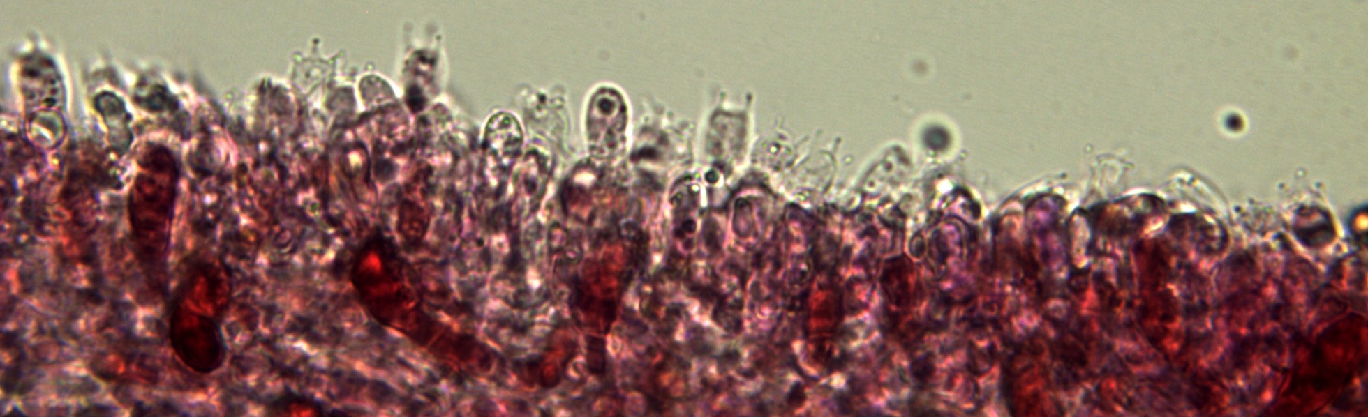 Hola Jon Ander, estos son complicados aún con toda su micro. En primer lugar felicitarte por la micro, estás avanzando a pasos agigantados. Este que nos muestras se trata de un Cortinarius que proviene del grupo "Dermocybe", de estos y que me haya encontrado bajo pinos el más parecido a lo que nos muestras es el Cortinarius cinnamomeus, aunque hay otros de muy parecidos que no me he encontrado aún, como el Cortinarius croceus y el Cortinarius malicorius, aunque en los tres casos las medidas esporales que nos indicas están bastante por debajo de las que deberían presentar, asegúrate de que tienes el micro bien calibrado para las mediciones, en cuanto a las imágenes a 1000 aumentos quizás deberías utilizar algún tipo de filtro ya que parecen sobreexpuestas (con demasiada luz), este detalle puede afectar a las mediciones, la ornamentación esporal en estos casos es a menudo determinante.