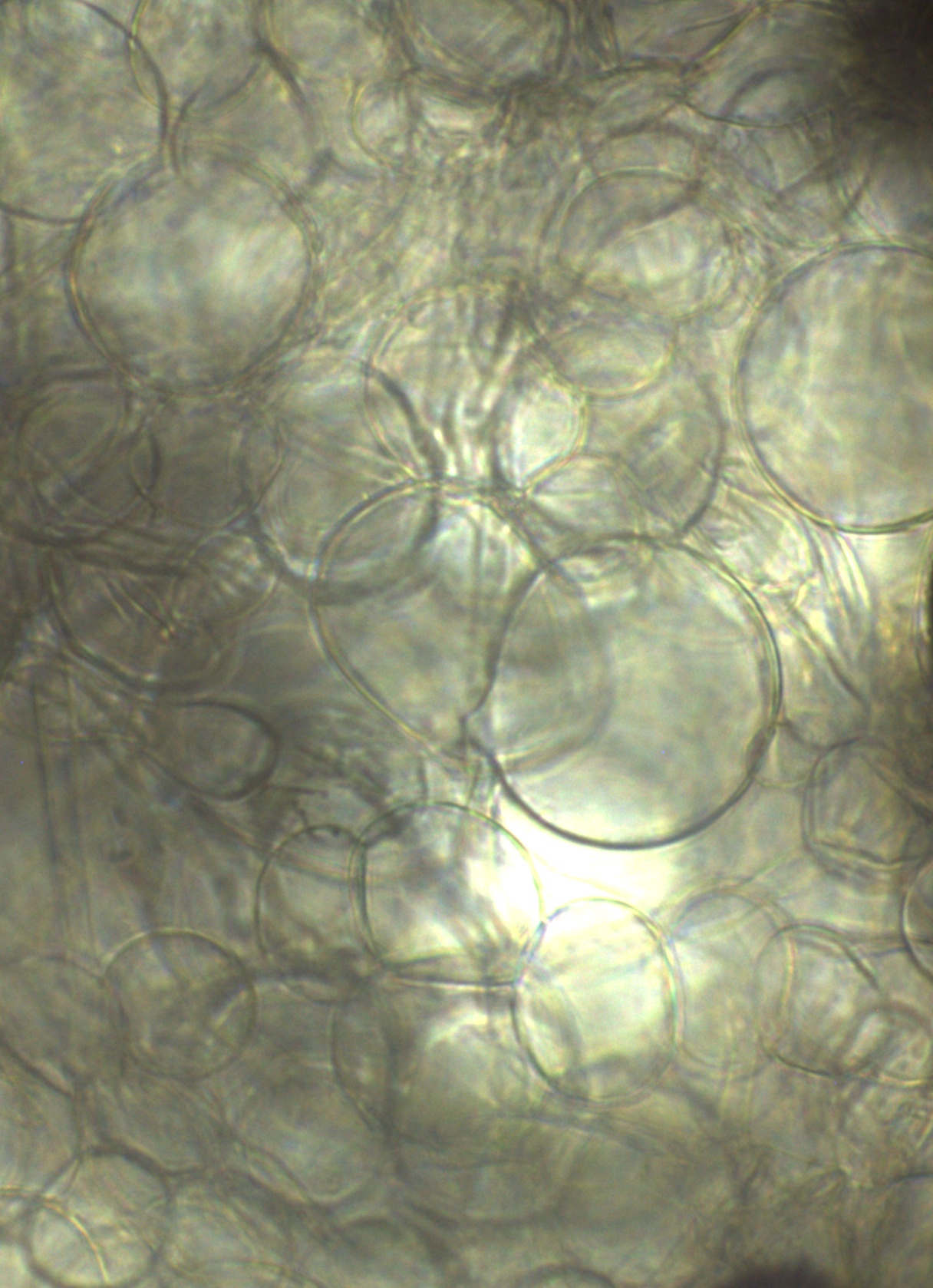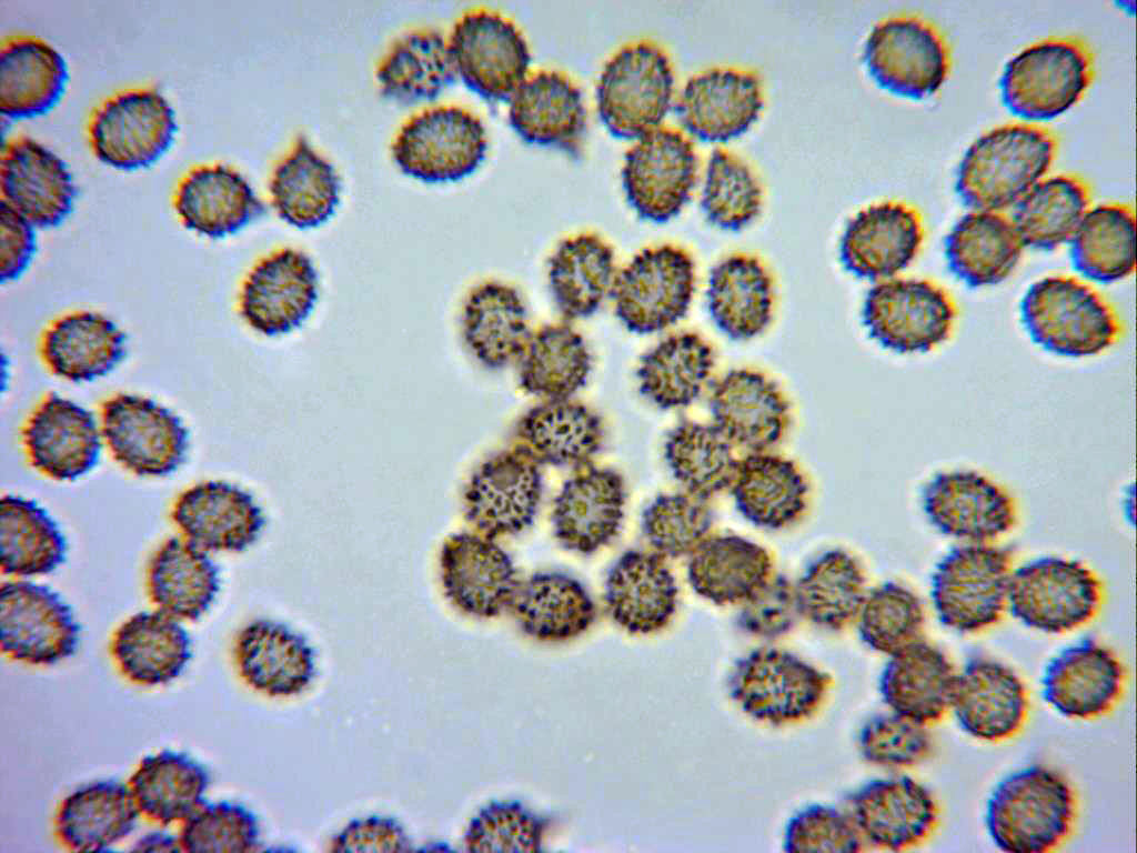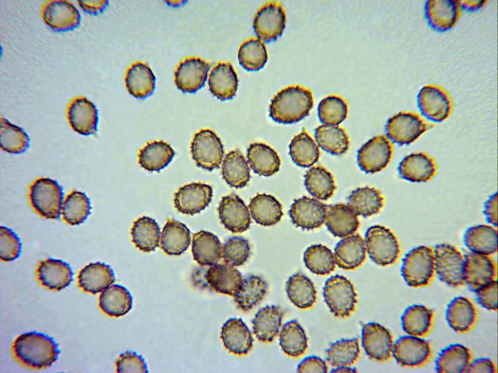 Dos imágenes de sus esporas en diferentes planos para realzar su ornamentación, en este caso las medidas se corresponden bastante con las que nos indicas.
