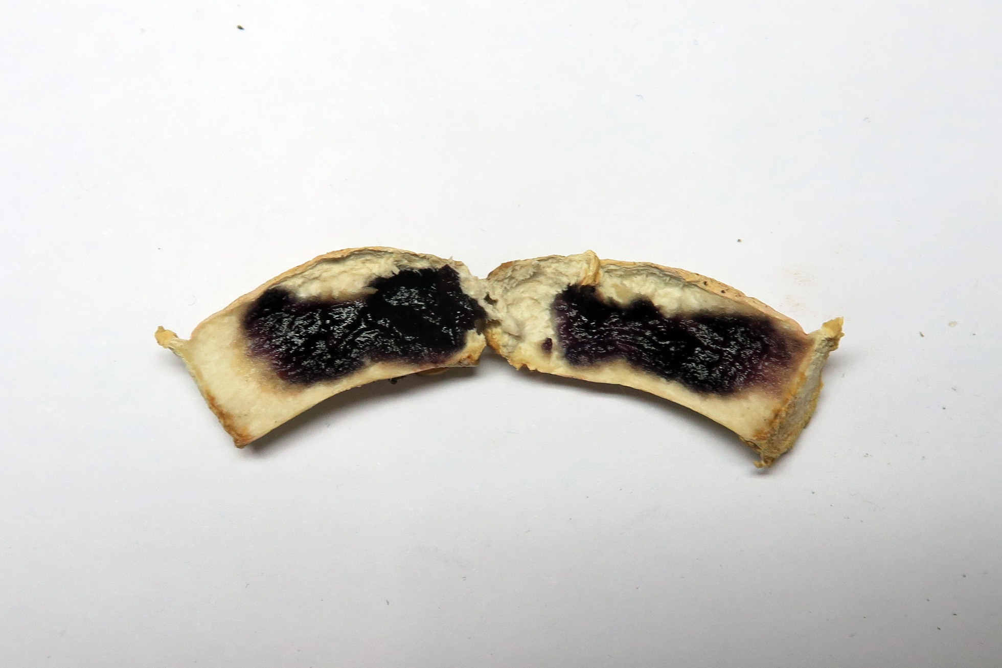 Adquiere un color azul muy oscuro, prácticamente negro.