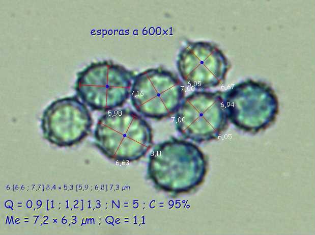 Hola Jon Ander, en el caso de las Russulas lo más importante a la hora de su identificación es el comportamiento frente a los reactivos. La morfología y medidas esporales son muy parecidas entre ellas y en la microscopía de las Russulas solo son relevantes las muy sutiles diferencias en cuanto a la ornamentación en sus esporas, así como la presencia o no de Pileocistidios.