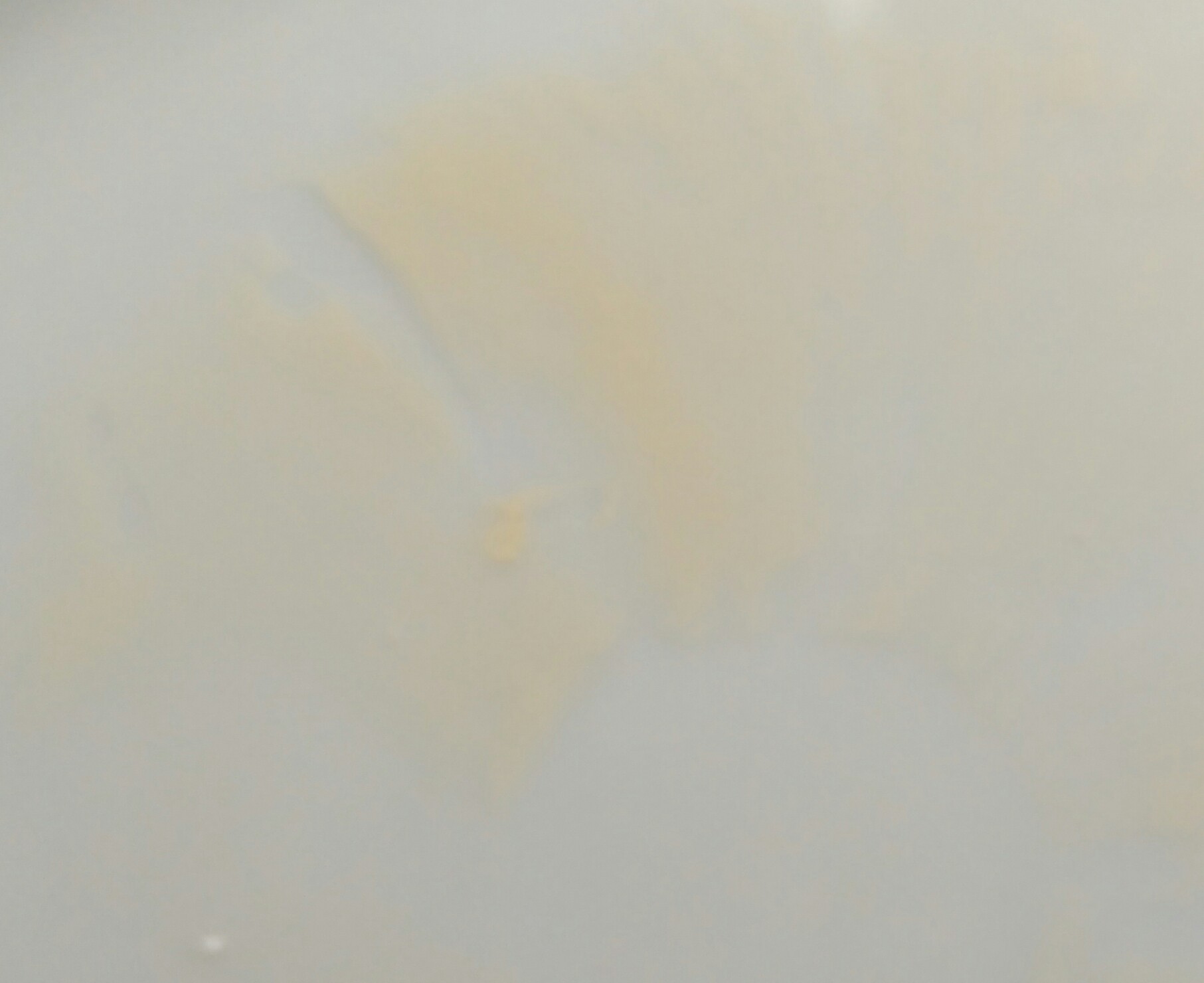 Reacción lenta al Guayacol, en la imágen el aspecto a los 30 minutos, con un color rosado carne pálido.