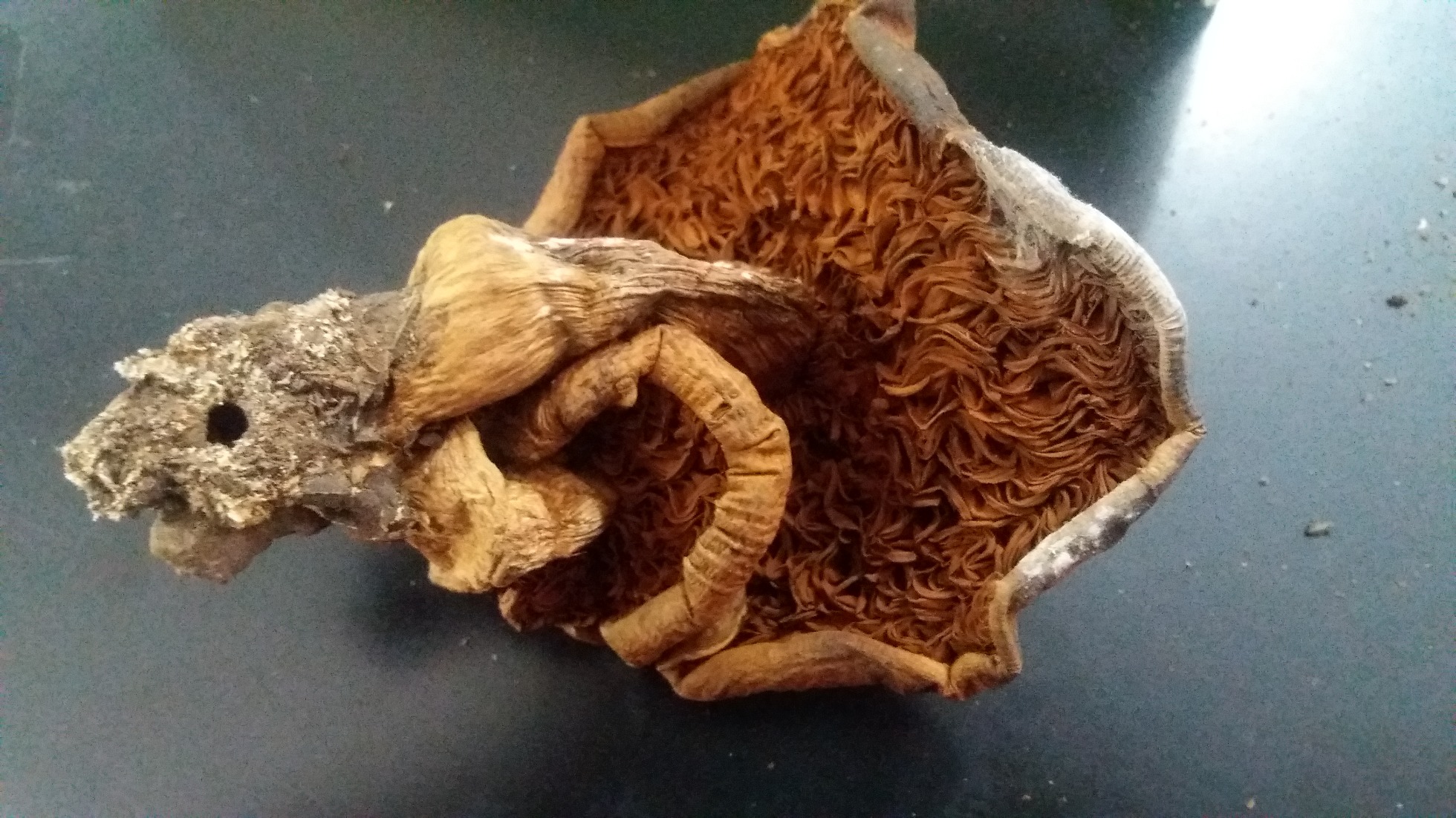 De todos modos con las imágenes que nos muestras me voy a atrever con alguna, a mi modo de ver la séptima imágen corresponde a una Pholiota sp., la octava es de una Xylaria, he podido comprobar que eres del Continente Americano (México), en tu Continente me he encontrado con la Xylaria multiplex, mira a ver si te cuadra. La novena parece alguna especie de Trametes, y las dos anteriores a la última, si son de lo mismo, por el detalle de los aguijones, parece un Hydmum, y por el sombrero umbilicado Hydnum umbilicatum, esta también esta presente por tu Continente, y hasta aquí puedo llegar.