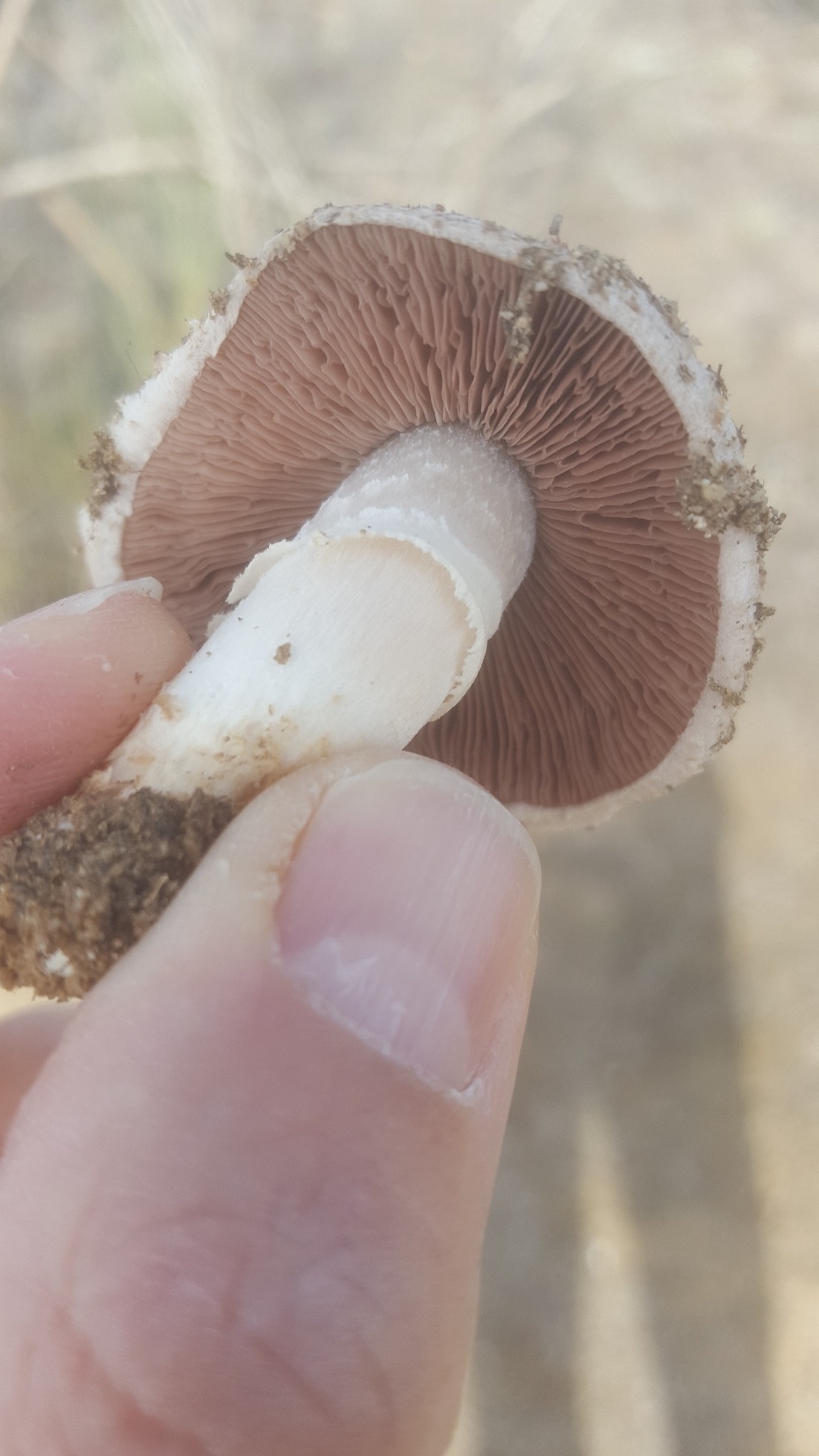 Hola Alfonso, tema complicado el de los champis, yo viendo este anillo tan efímero, apostaría por Agaricus campestris var. squamulosus, este es uno de los que me encuentro habitualmente.