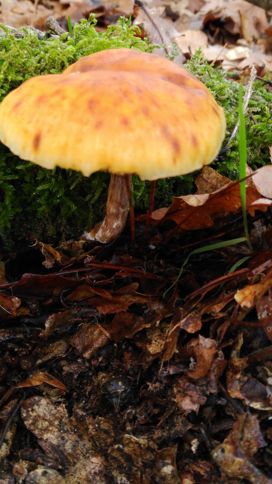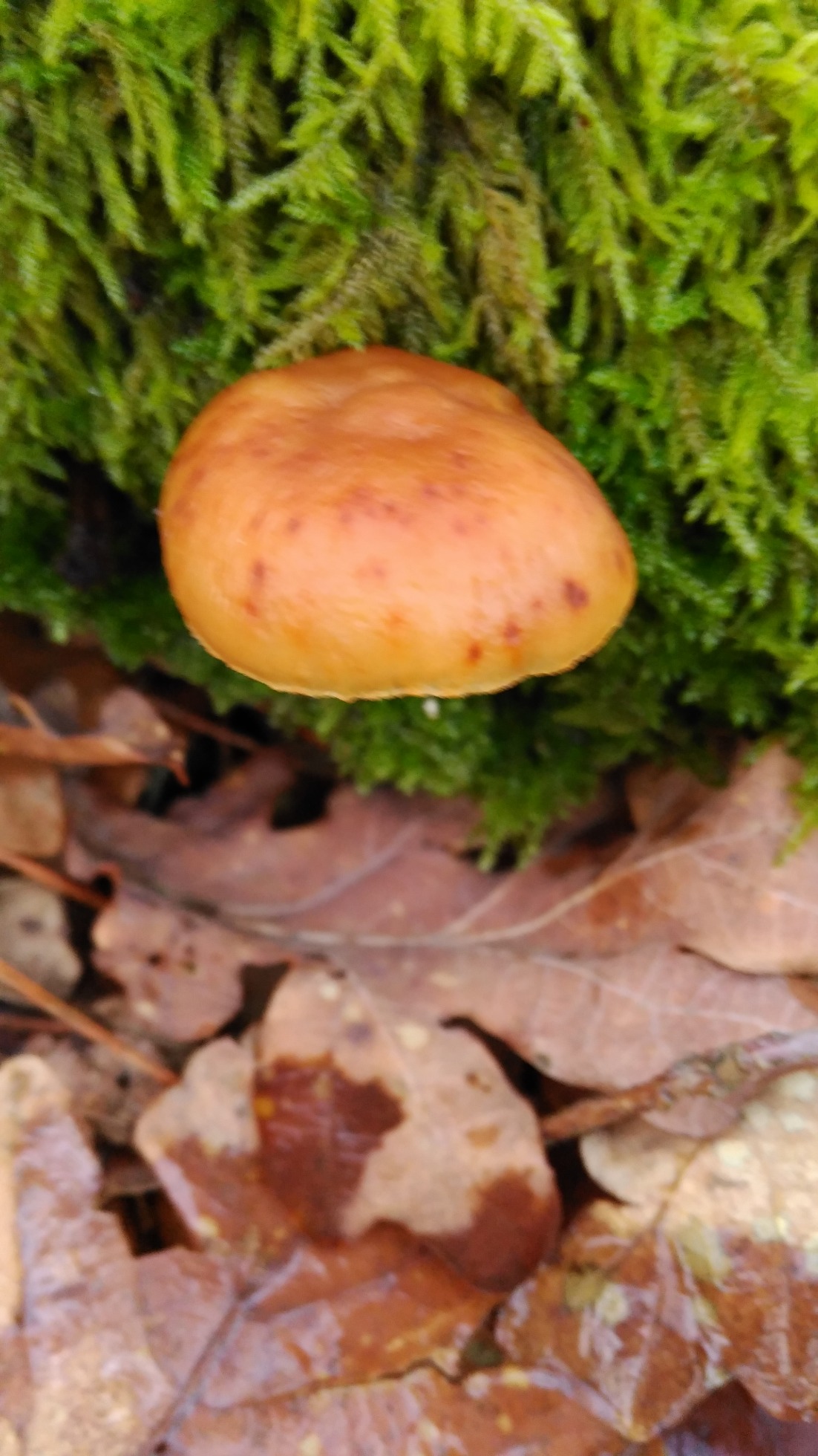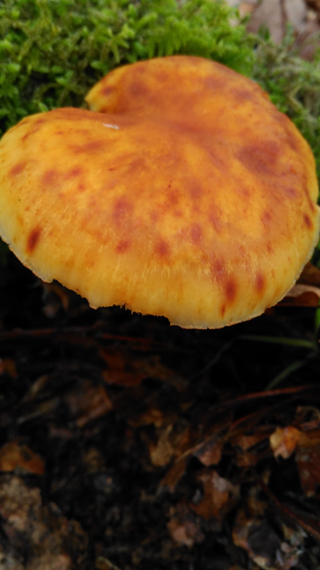 Muy plausible la propuesta de Jvier, en este caso las medidas esporales nos sacarían de dudas (la morfología esporal parece encajar). Para confrmarlo sería muy importante además que pudieras facilitarnos una imágen de los queilocistidios (cistidios de la arista laminar), en el caso del Gymnopilus suberis muy abundantes y capitados.