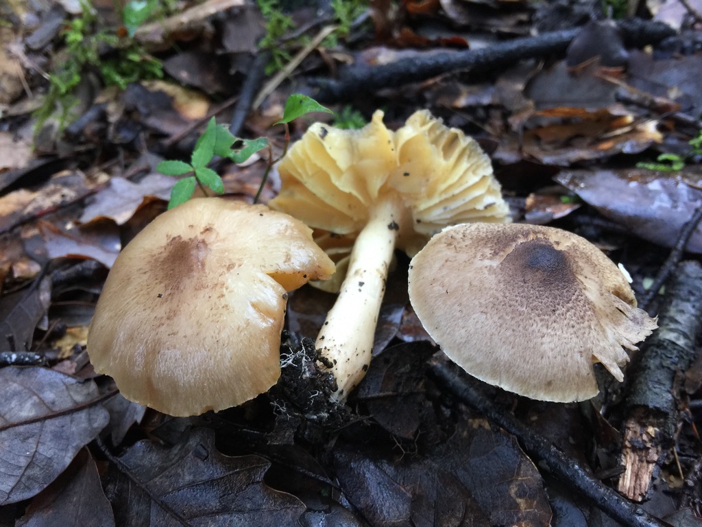 Con el permiso de Josep y Jon Joseba, a mi no me cuadra del todo la primera con el scapturatum, aunque si que es cierto que todos los tricholoma se degradan a amarillento incluso en seco, cualquier otra que haya estado expuesta a alta humedad podría tener esa coloración, también es posible que el amarillento sea debido al balance de blancos, pues el sombrero también presenta el color, tampoco me cuadra mucho lo convexo del sombrero que para su avanzado crecimiento debería estar más plano e irregular, y las láminas aunque no se aprecian del todo dan impresión de ser más libres que escotadas. En cualquier caso, si huele a harina seguro que es el scapturatum
