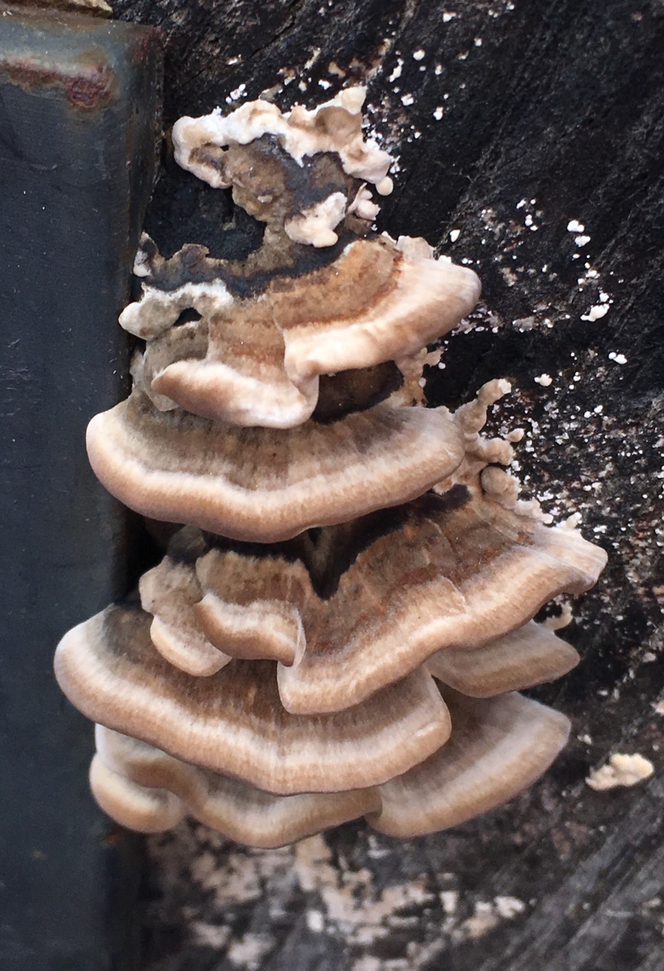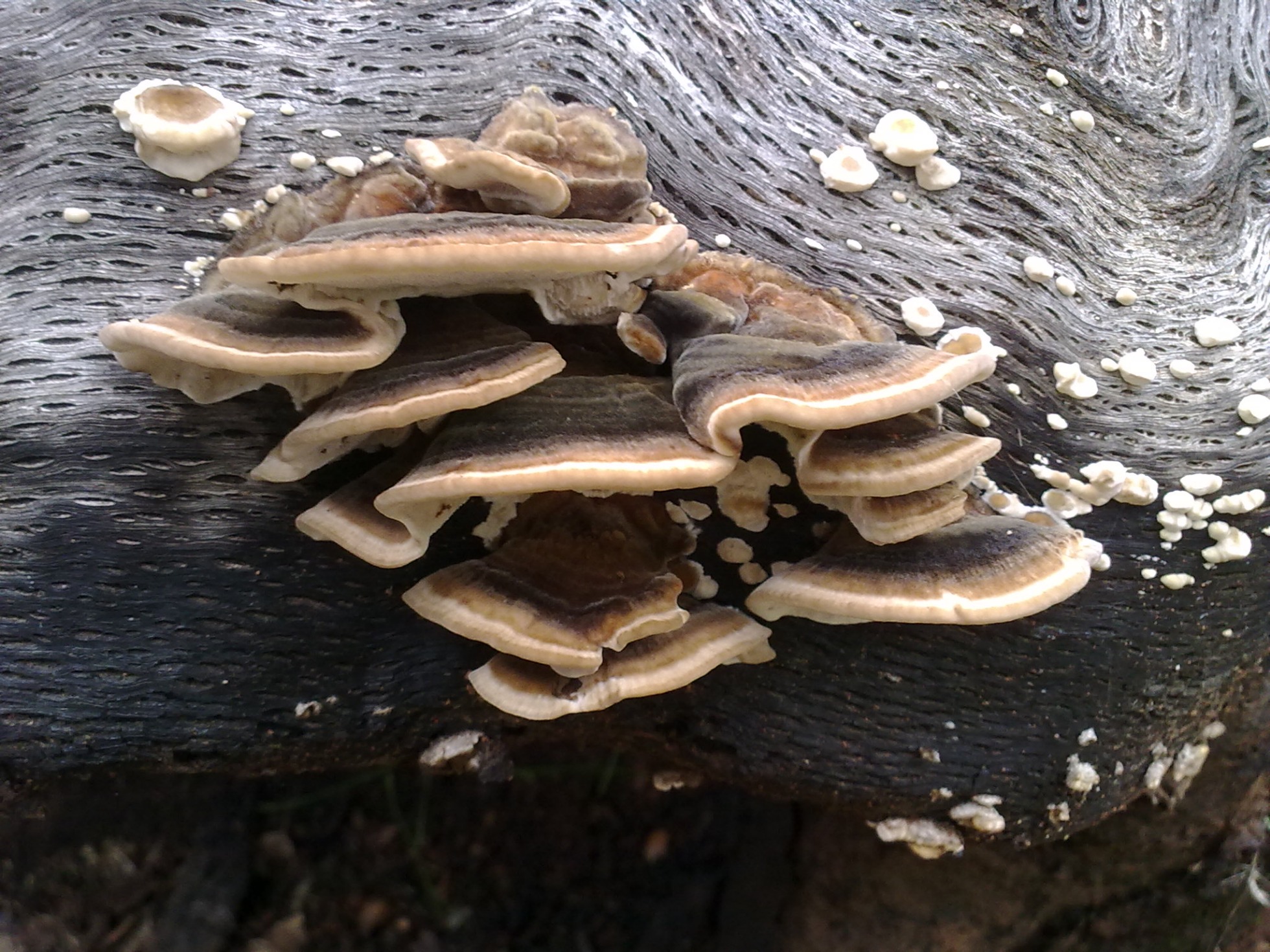 En cuanto a las dudas, a mi también me parecen Trametes versicolor y la otra Stereum saliendo, probablemente hirsutum pero viniendo de Polonia igual es otro.