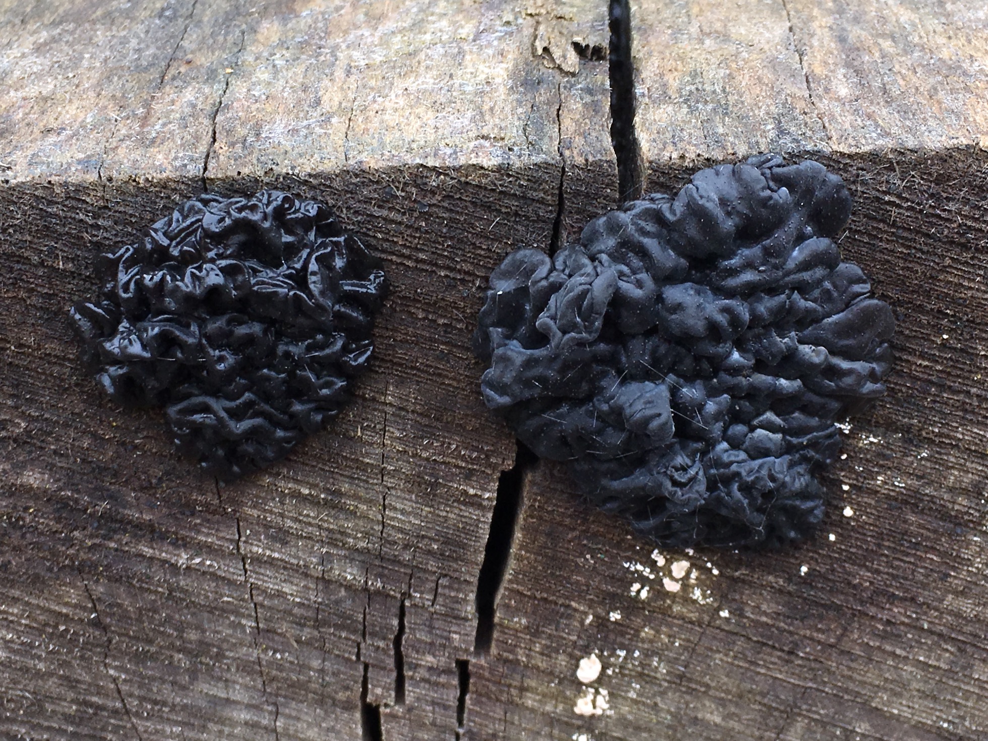 Y por ultimo unas bonitas Exidia glandulosa que han salido en casi todos los tronco, supongo que el micelio de todas esta ya vino en el tronco desde Polonia.