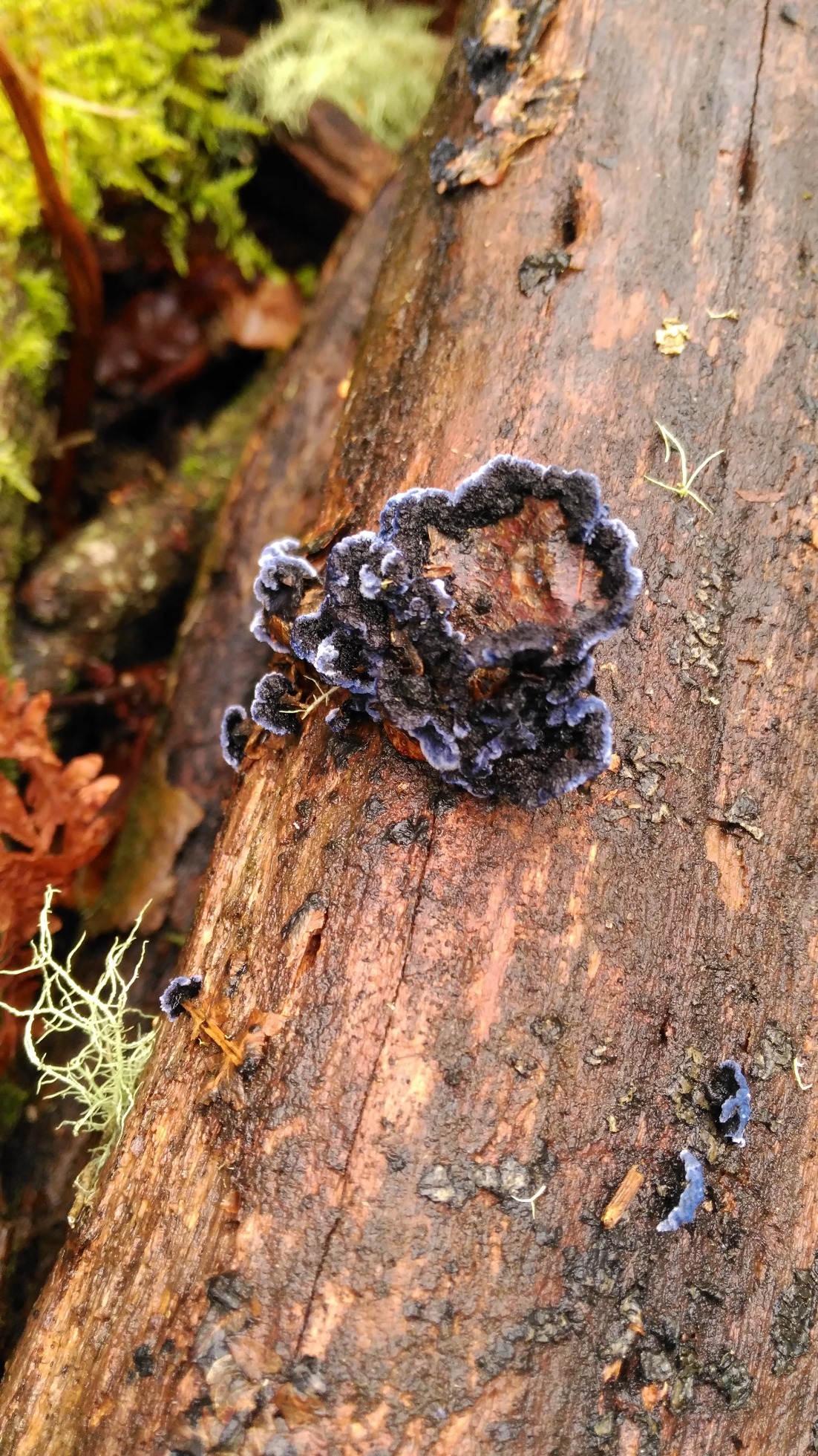 Pues.................., Jon Ander, yo no lo tengo para nada claro. El Chondrostereum purpureum presenta generalmente el himenio y sobre todo el borde del sombrero con unos tonos violeta bastante pronunciados, este detalle no lo aprecio en ninguna de tus imágenes. Viendo las dos ultimas, aunque su estado no es óptimo, ni tan siquiera descartaría una posible Telephora.