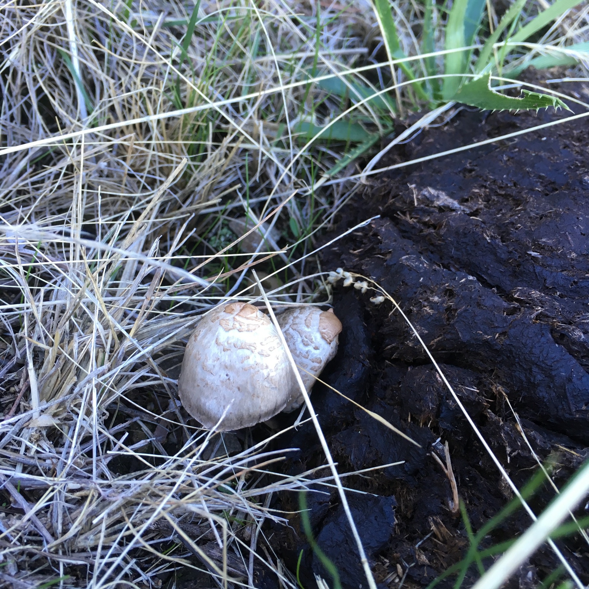 Aqui dejo una foto mas luego de volver a caminar por la sierra. Hay dos tipos de hongos, estos crecen sobre el excremento del ganado: