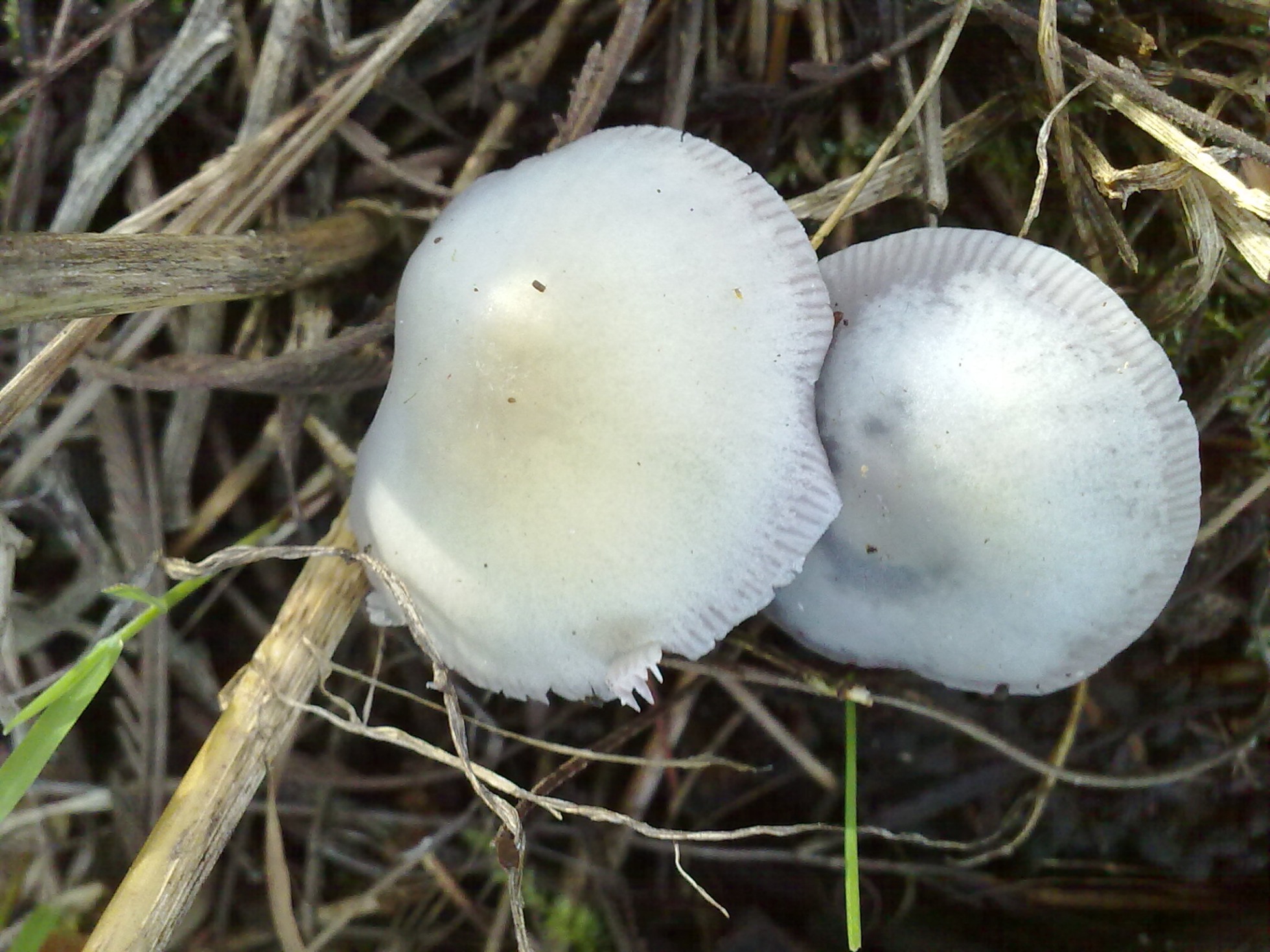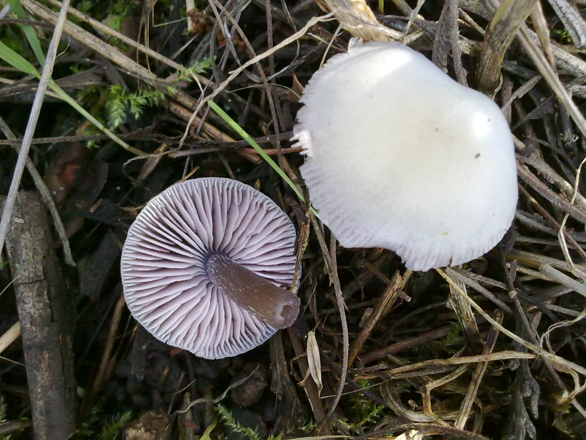 Hola Ángel parece una Laccaria, hasta incluso una Laccaria amethystina muy decolorada, lo que no me cuadra es que las láminas no sean decurrentes, de todos modos vamos a esperar más opiniones.