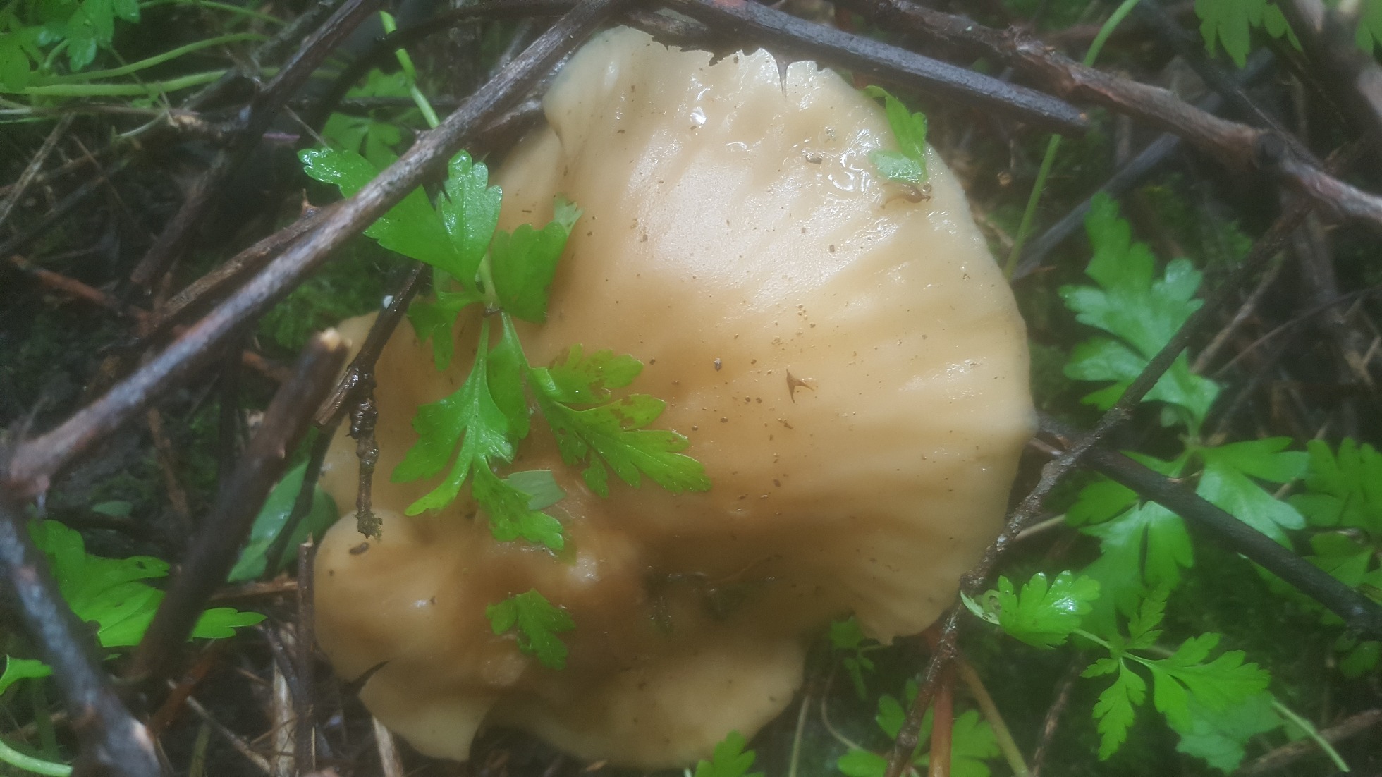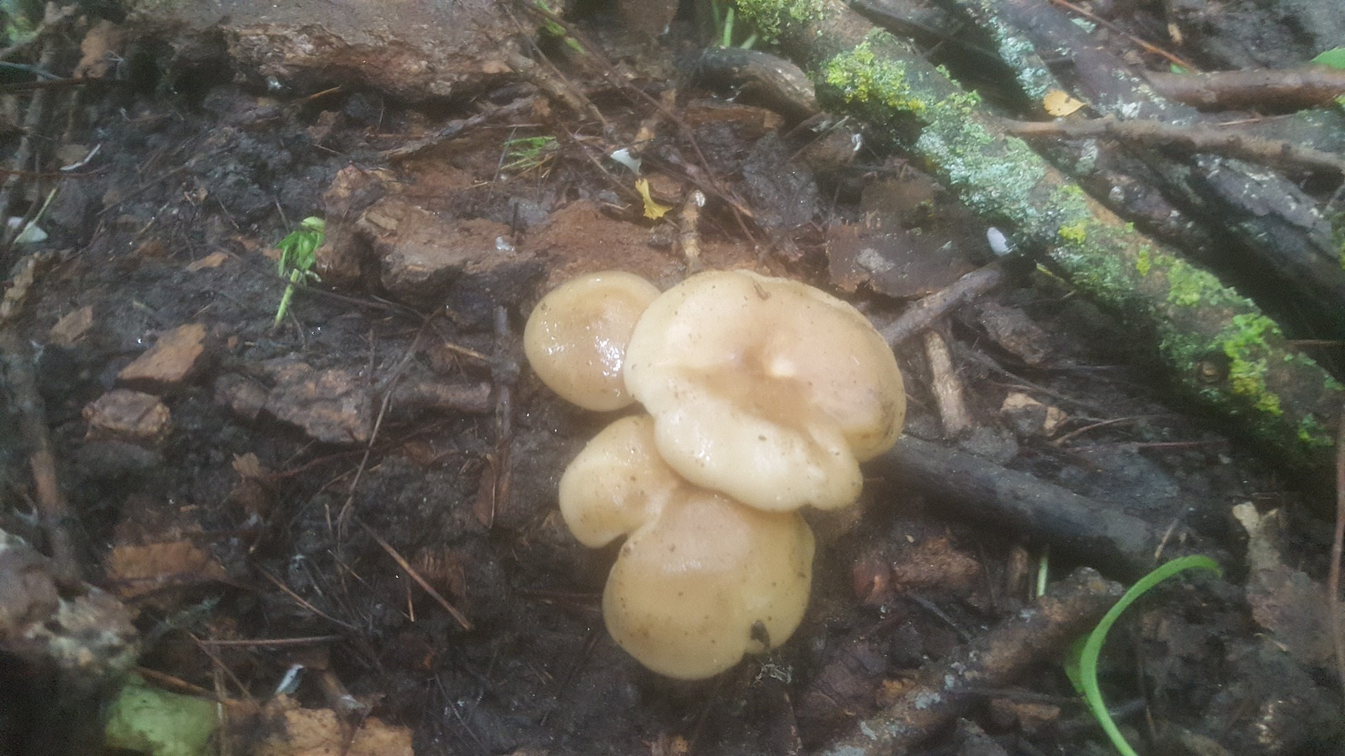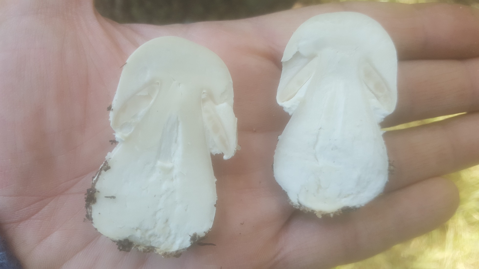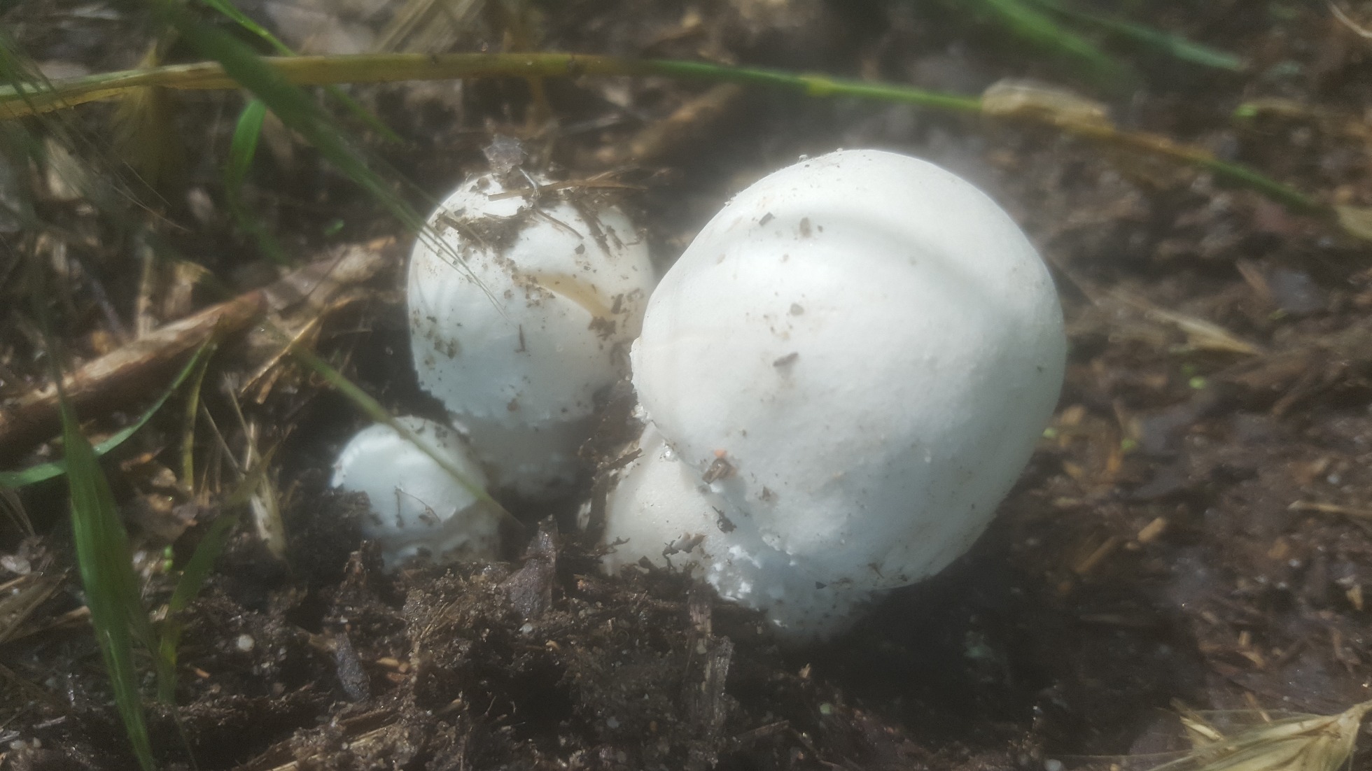 En las fotos que se ve no hay nada que guarde el más mínimo parecido con un perretxiko, esas que dices viscosas me imagino que serán unos Clitocybes, y las blancas compactas son el primordio de algo que no ha desarrollado, podrían hasta ser sylvicolas,Las otras blancas no se aprecia lo que son, sin verlas por debajo es imposible.