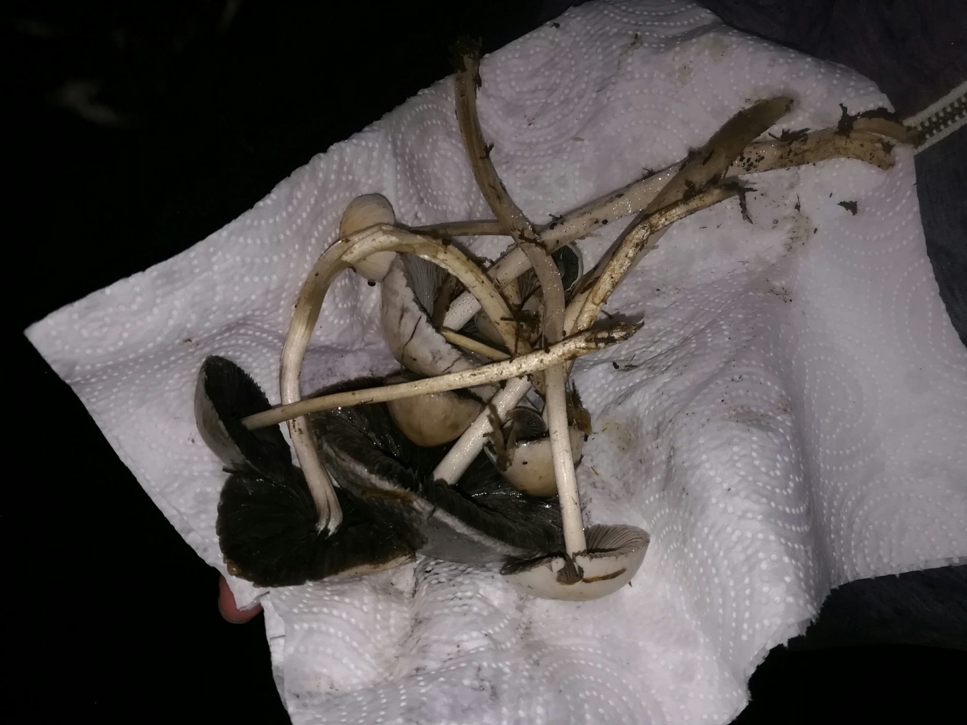 La verdad concuerdo con lo que dices, no tiene pinta de Psilocybe, me informé mejor y creo que son Copelandia Cyanescens, su esporado es bastante ocuro, en la mayoría negro y unos cuantos lo tenían de un marrón muy oscuro, llegando al negro.