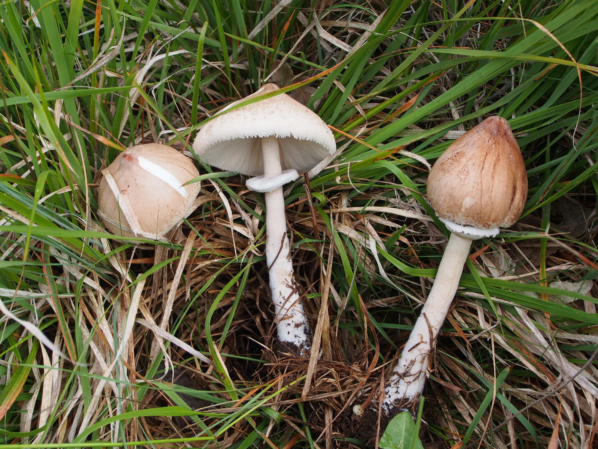 Las dos últimas fotos pienso que se trata todo de lo mismo pero que han perdido el anillo, osea Coprinopsis ephemeroides. Adjunto enlace: