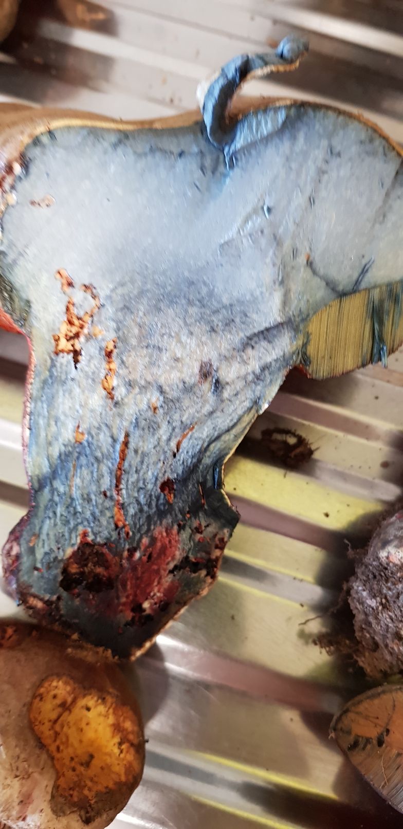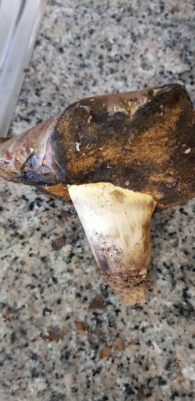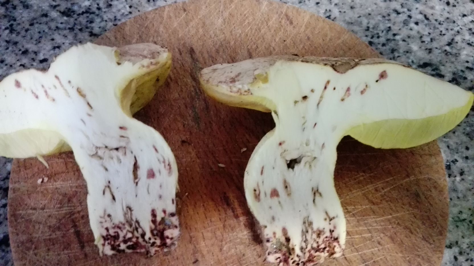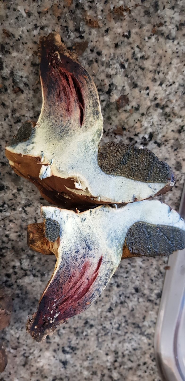 Estos ejemplares fueron recogidos bajo encinas y robles. Pienso que podría tratarse de erytropus pero como no lo tengo muy claro prefiero asegurarme. Como se puede ver azulean al corte y me llamó la tención que tras un buen rato vuelven a recuperar su color original.